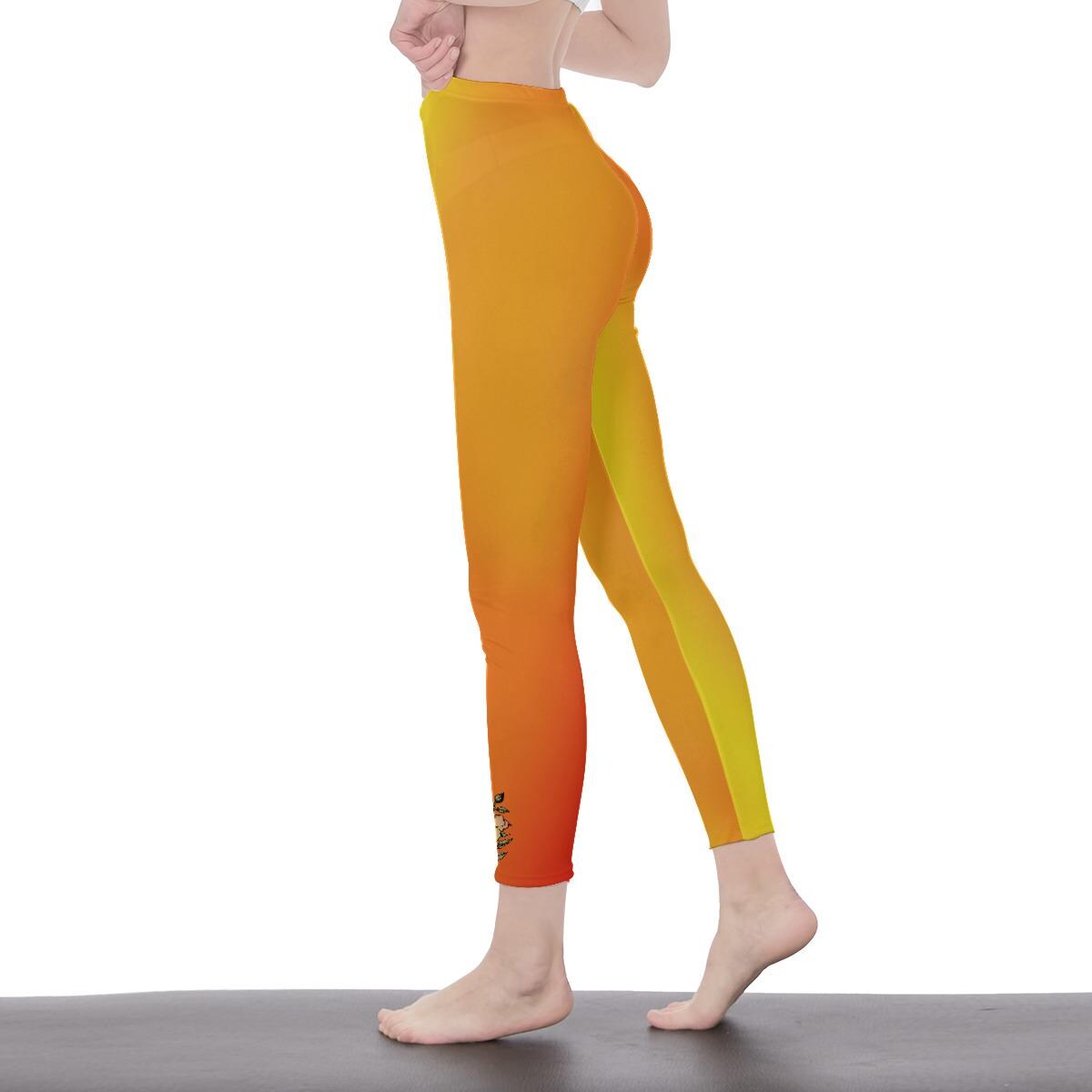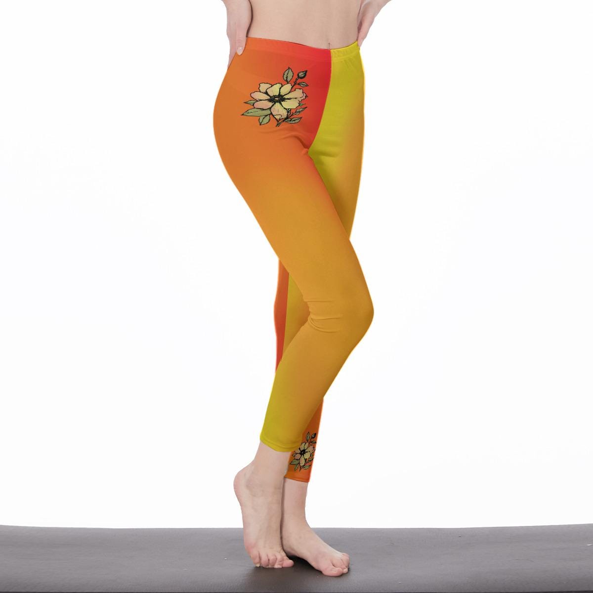 Warm Color Tones Ombre Floral High Waisted Leggings for Women | Soft Yoga Pants with Minimal Flower Design | Stylish Workout & Lounge Wear