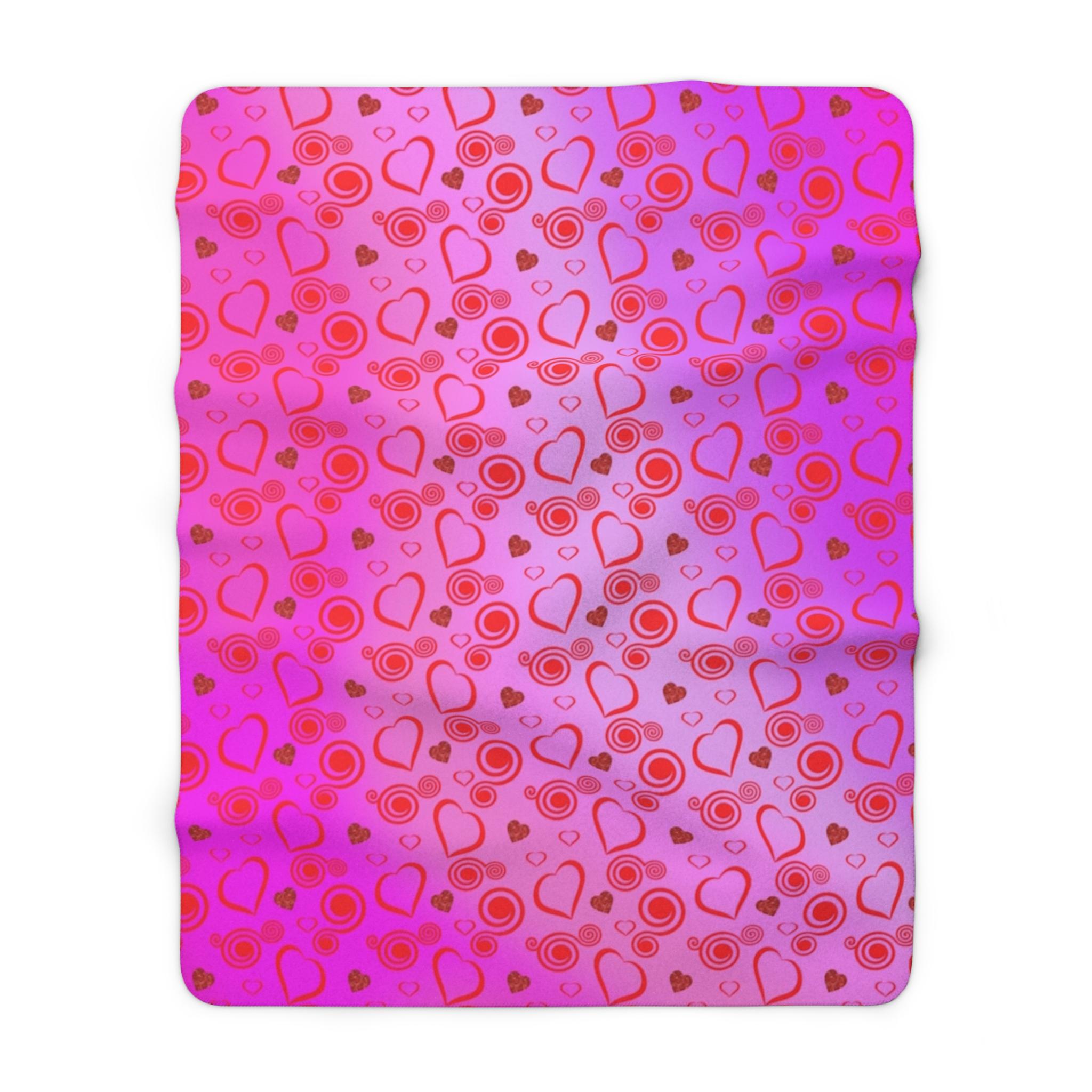 A cozy blanket featuring hearts and swirls on a pink gradient background, perfect for snuggling up during colder nights. This blanket is ideal for those who love cute and feminine designs, and it makes a great gift for birthdays, Valentine's Day, or just because.