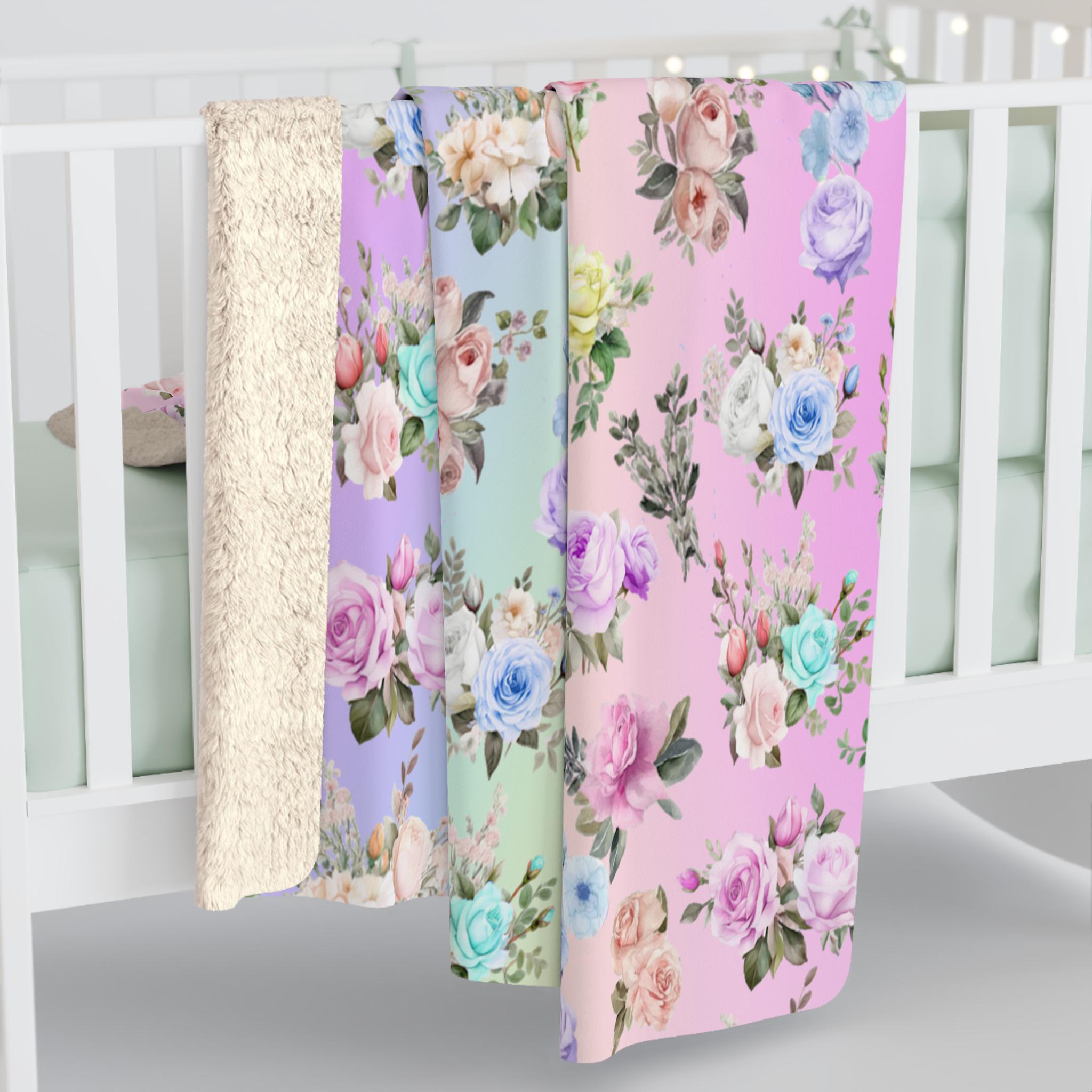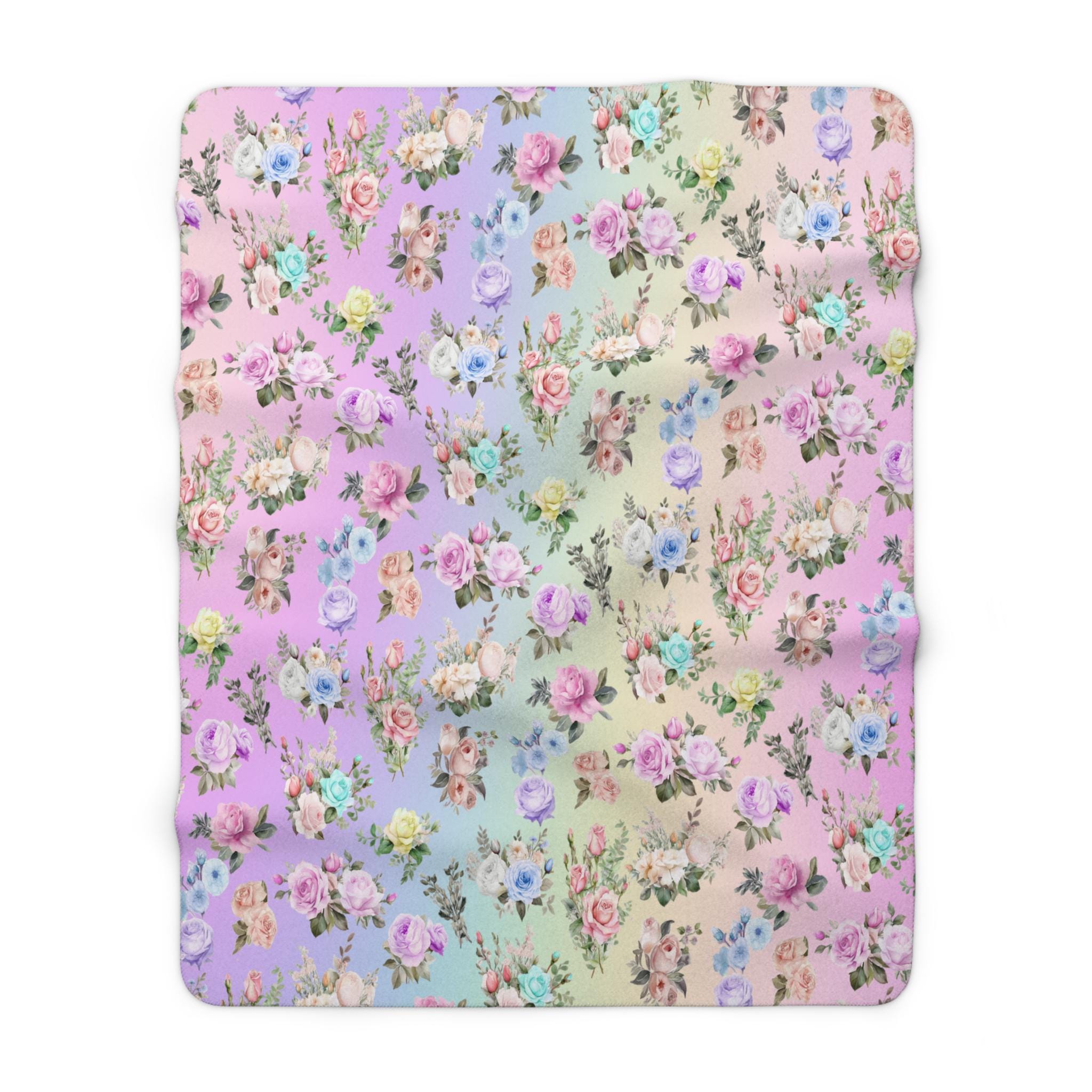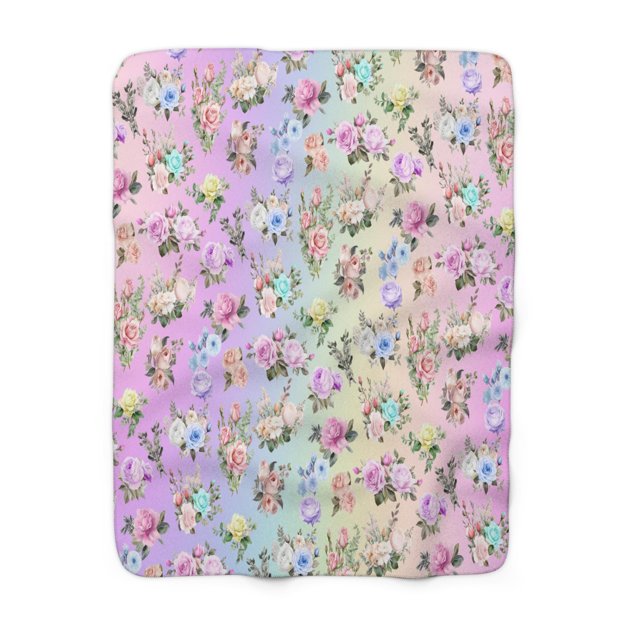 Floral Sherpa Fleece Blanket: Pastel Rainbow Throw Blanket