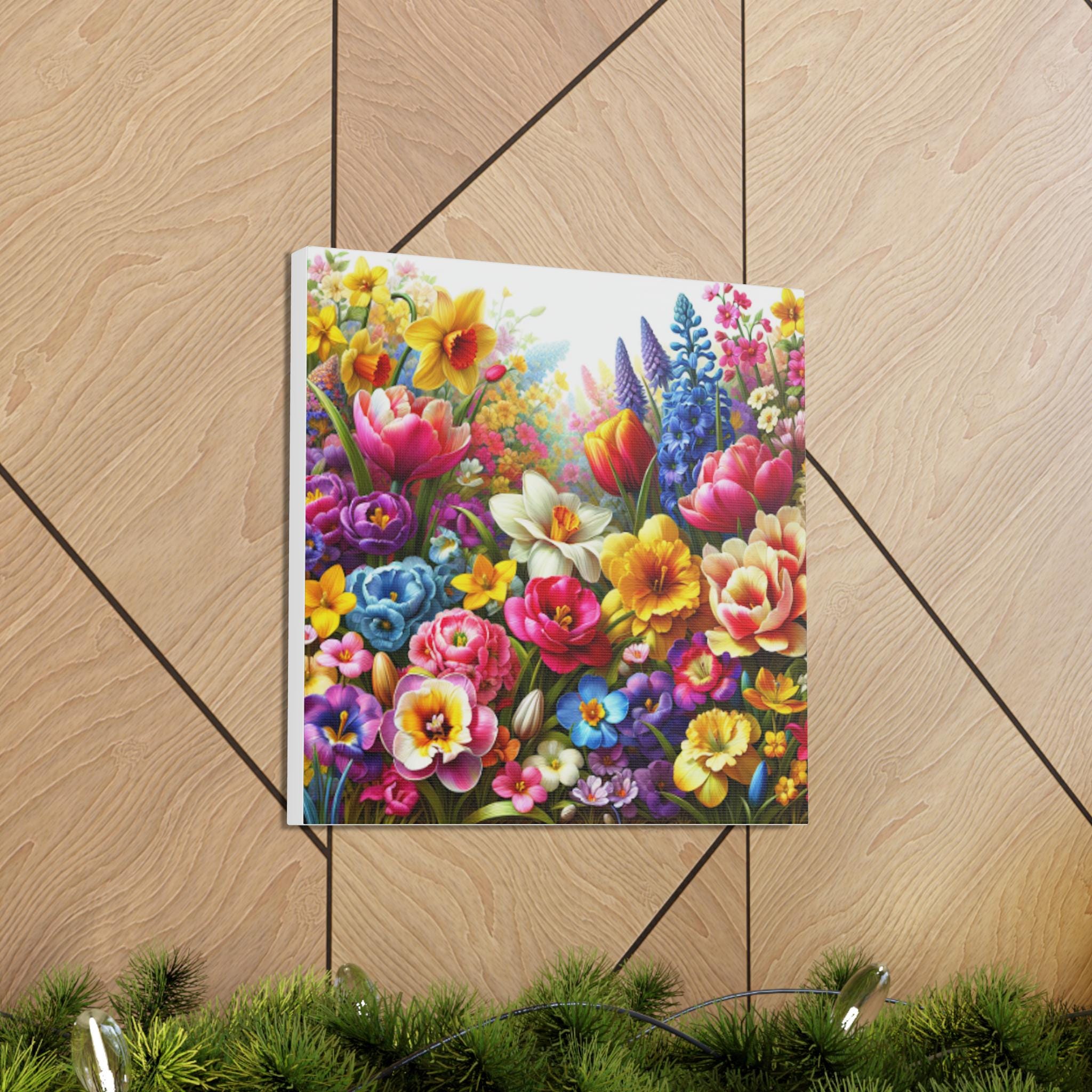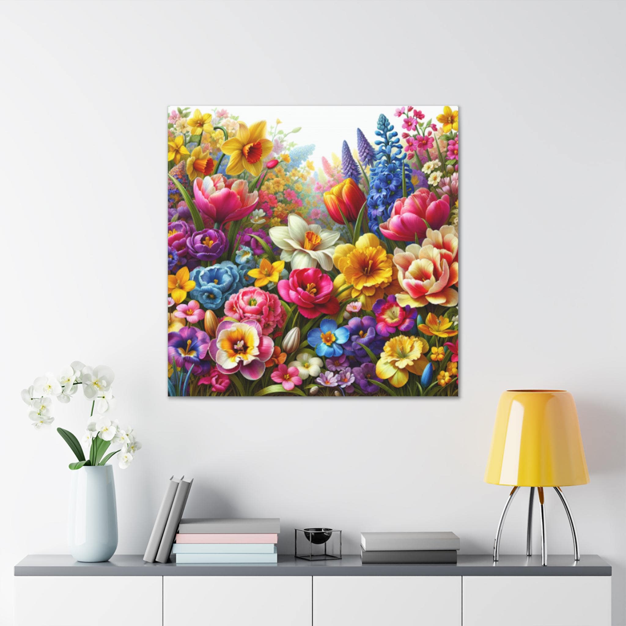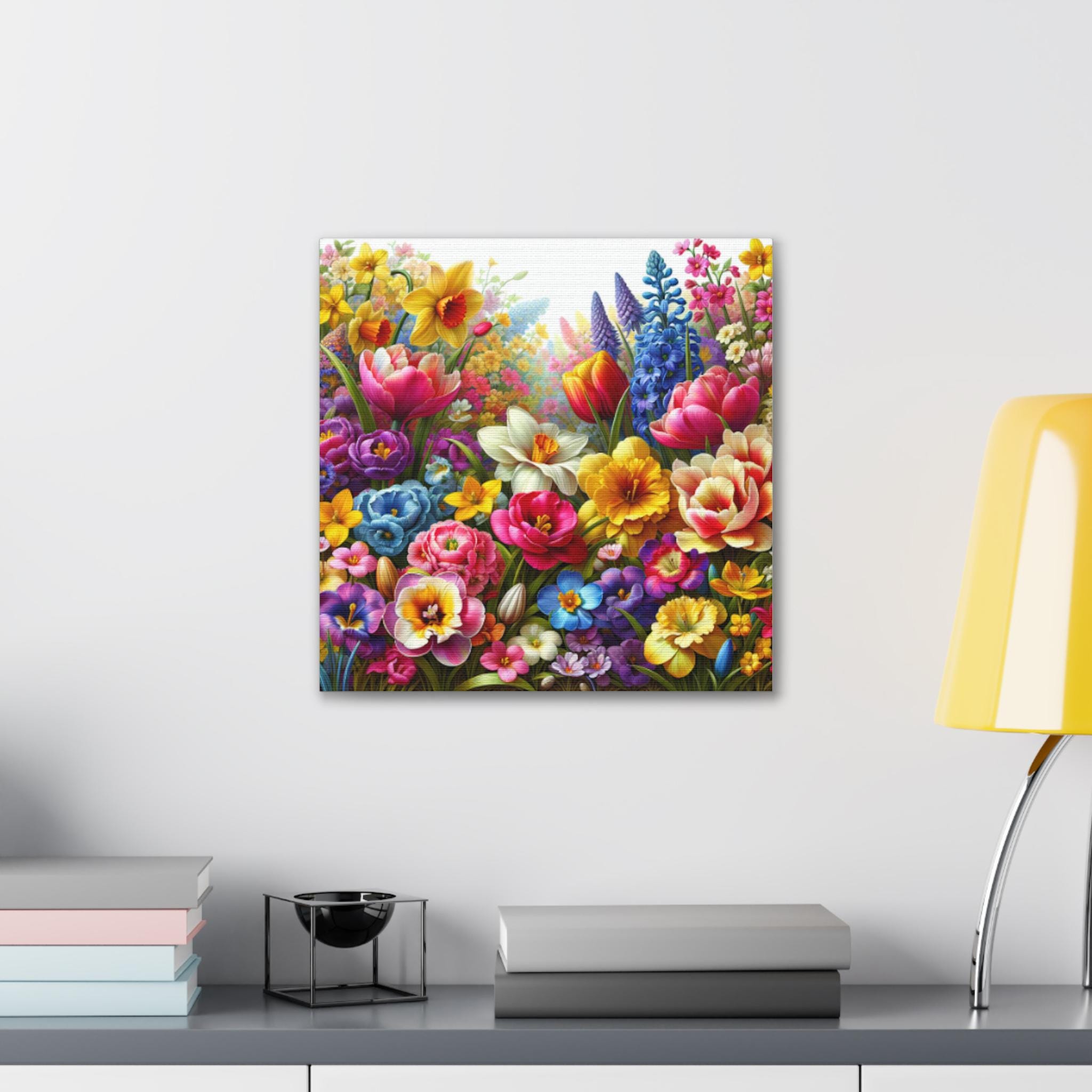Floral Canvas Gallery Wrap: Colorful Flower Garden Wall Art