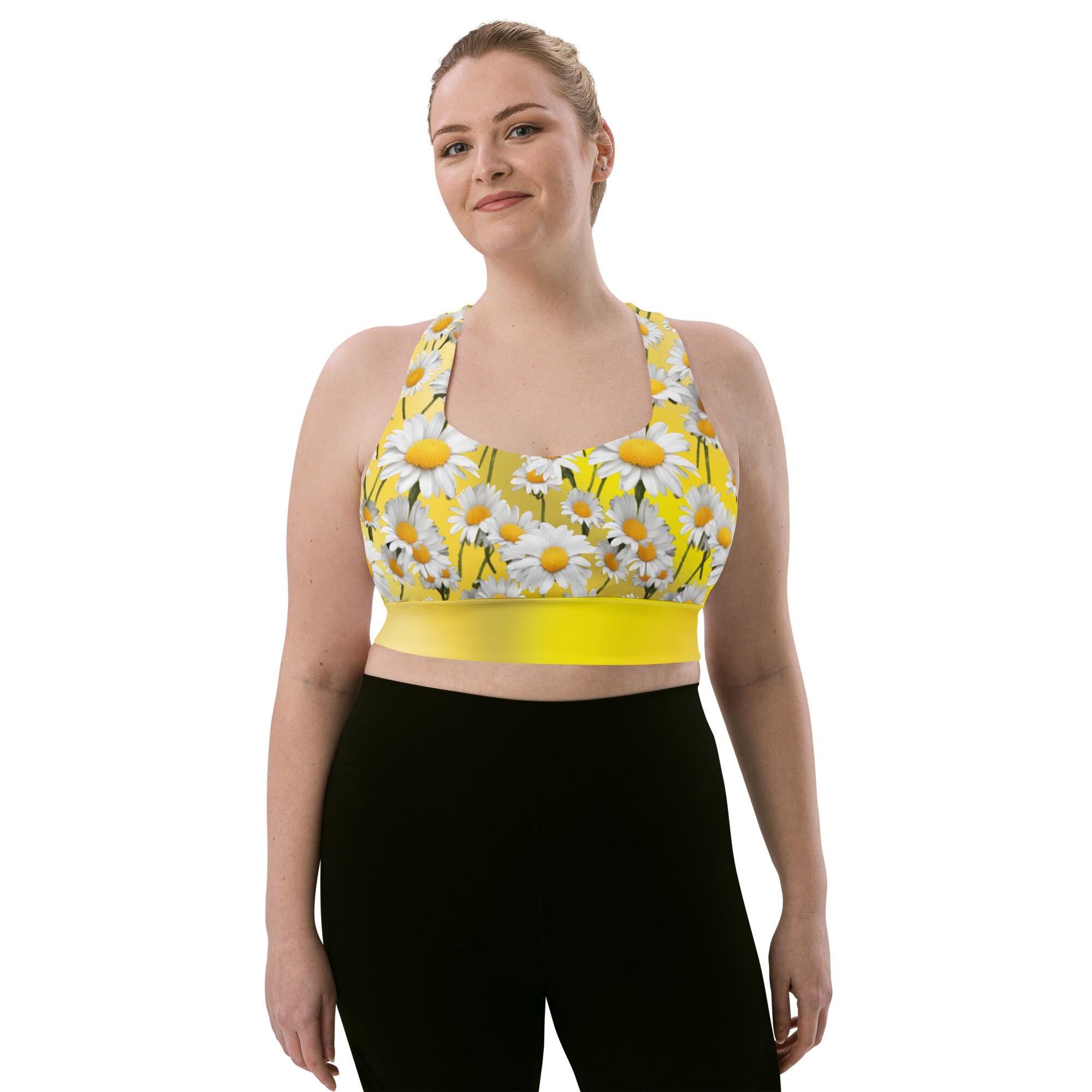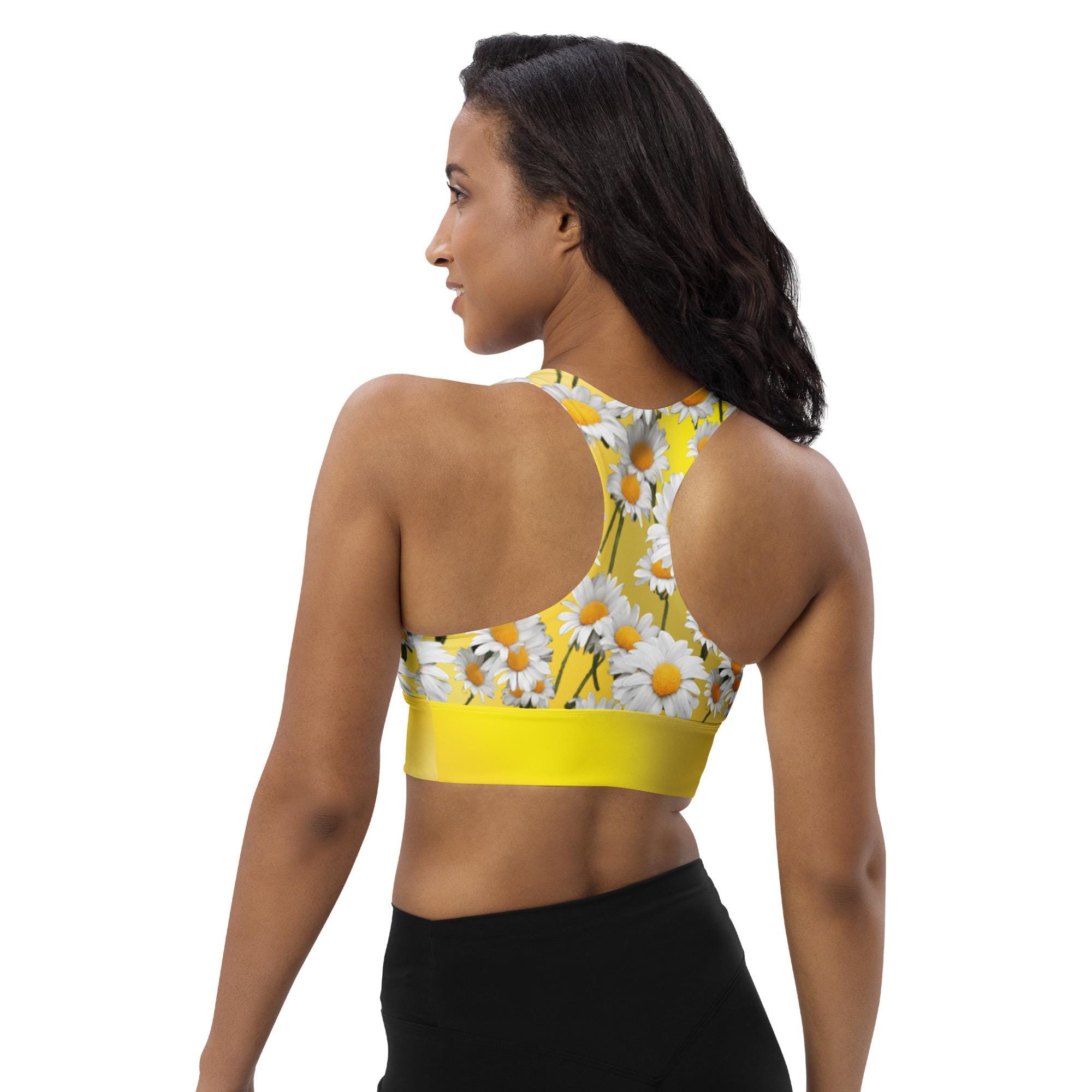 Daisy Print Recycled Longline Sports Bra: Yellow Activewear Top