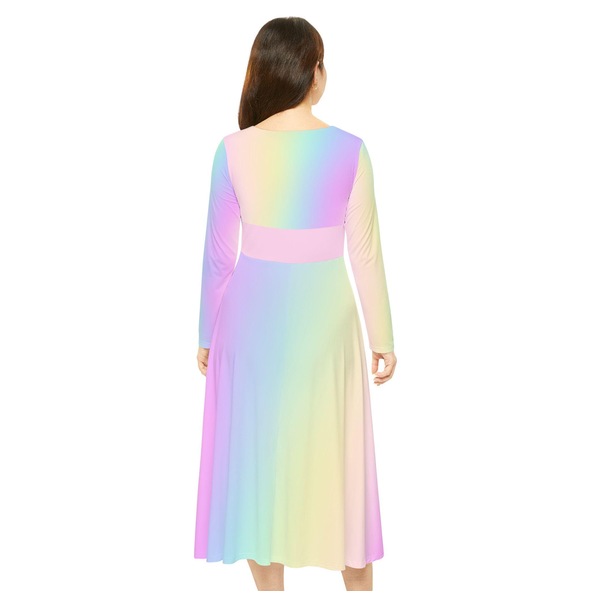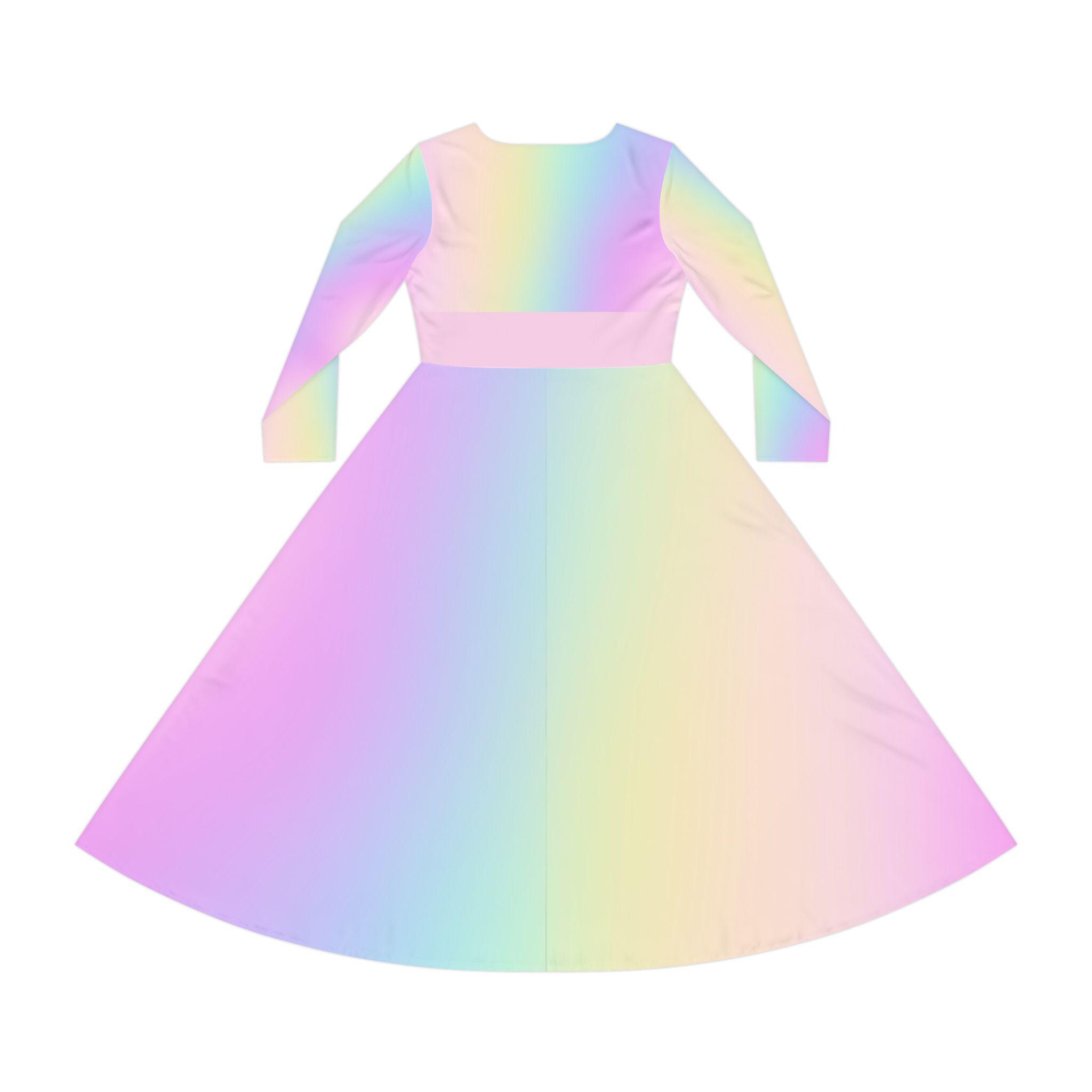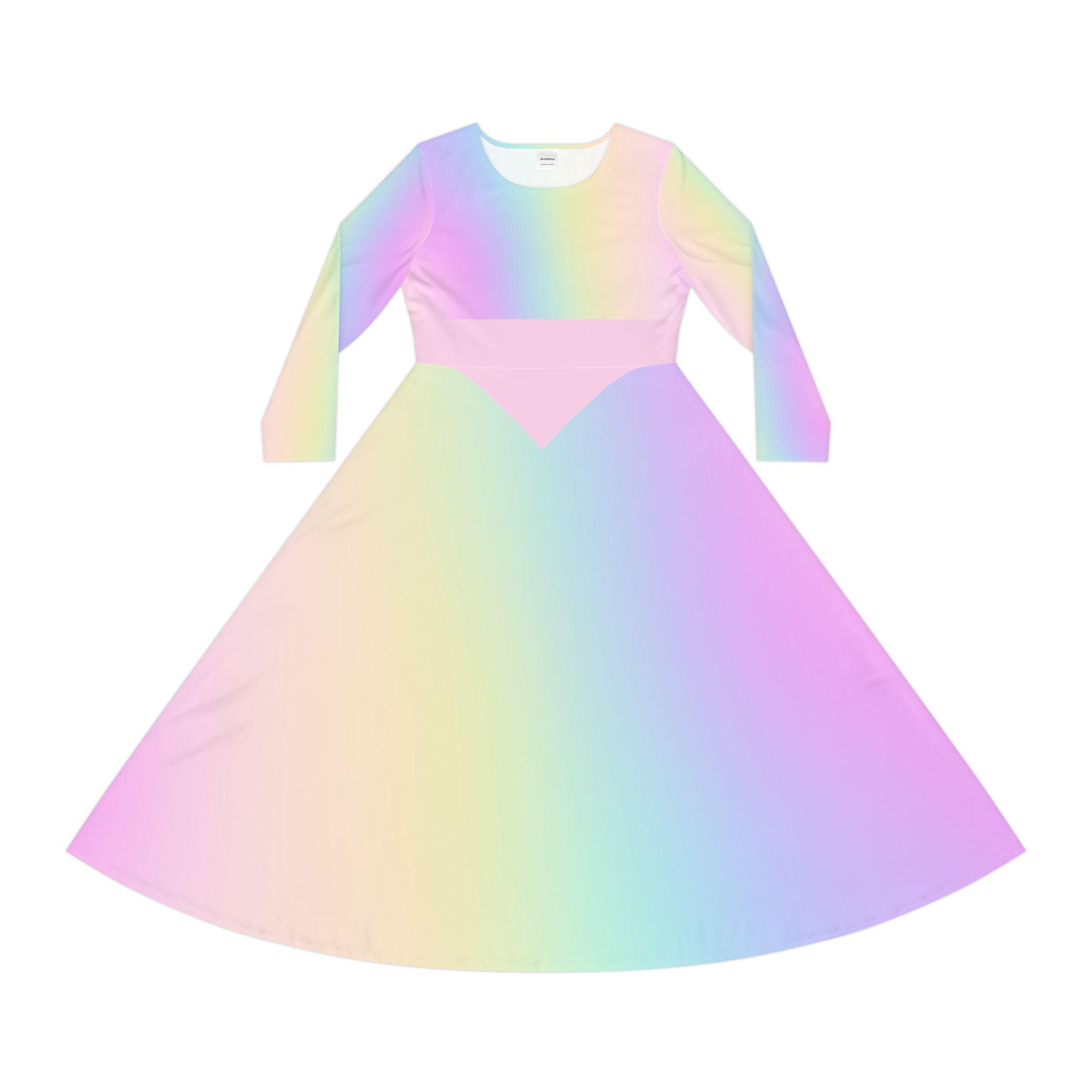 Pastel Rainbow Gradient Skater Dress: Long Sleeve Dance Costume