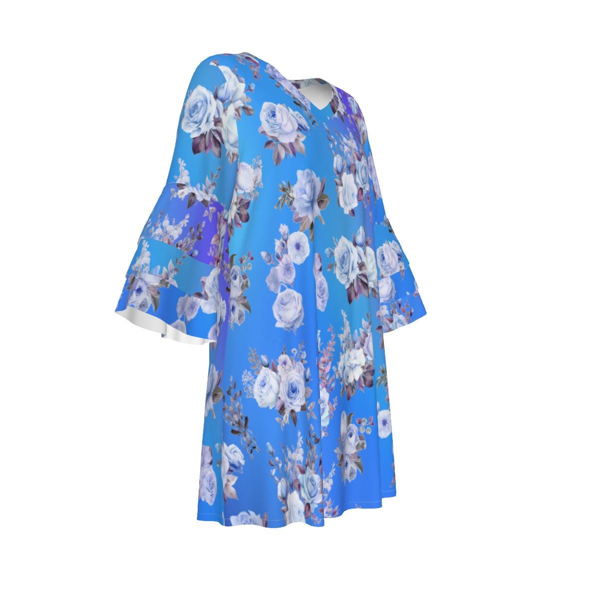Blue Floral Ruffle Sleeve Dress: Women's Summer Fashion