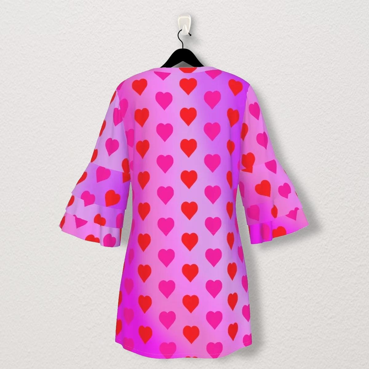 Adorable Hearts on a Pink Gradient Background Stacked Ruffle Sleeve Dress - Women's Spring & Summer Outfits!