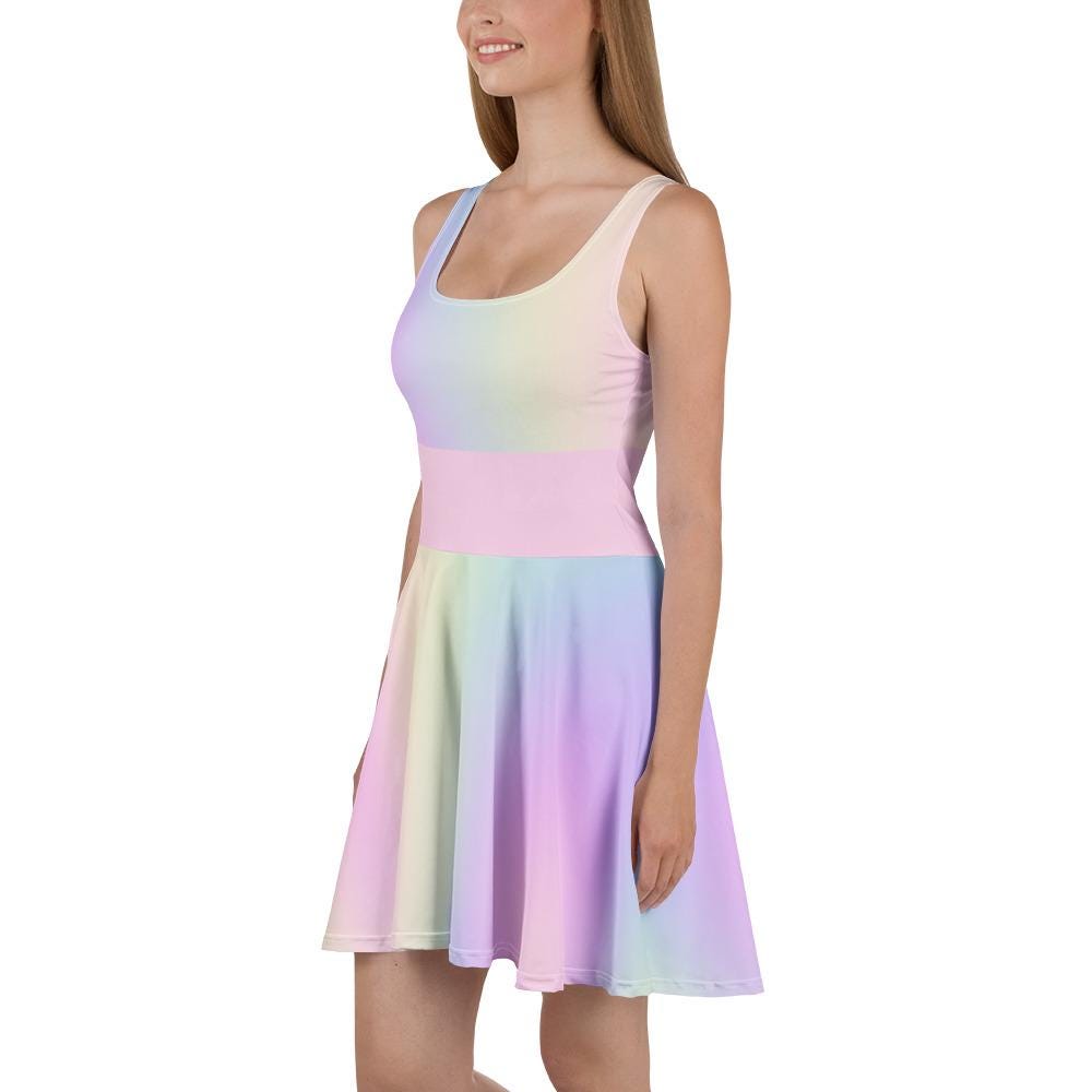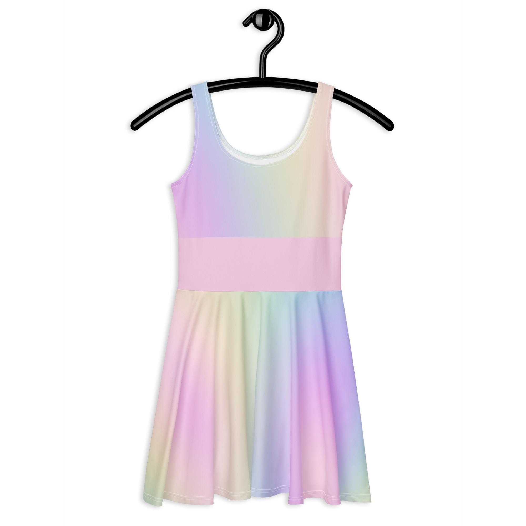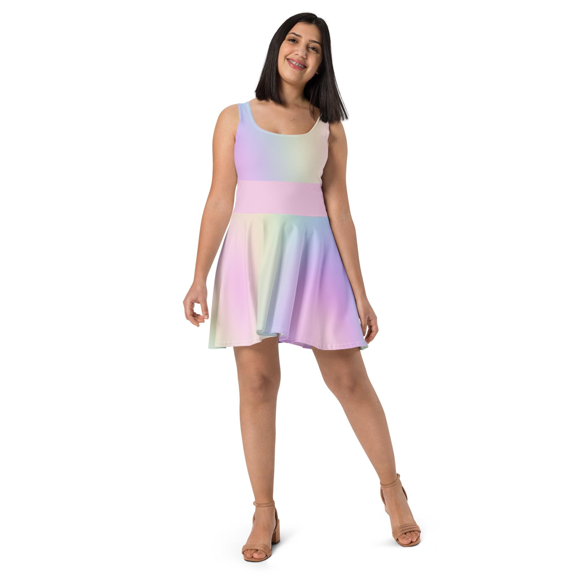 Pastel Rainbow Skater Dress: Sleeveless Above Knee Summer Dress