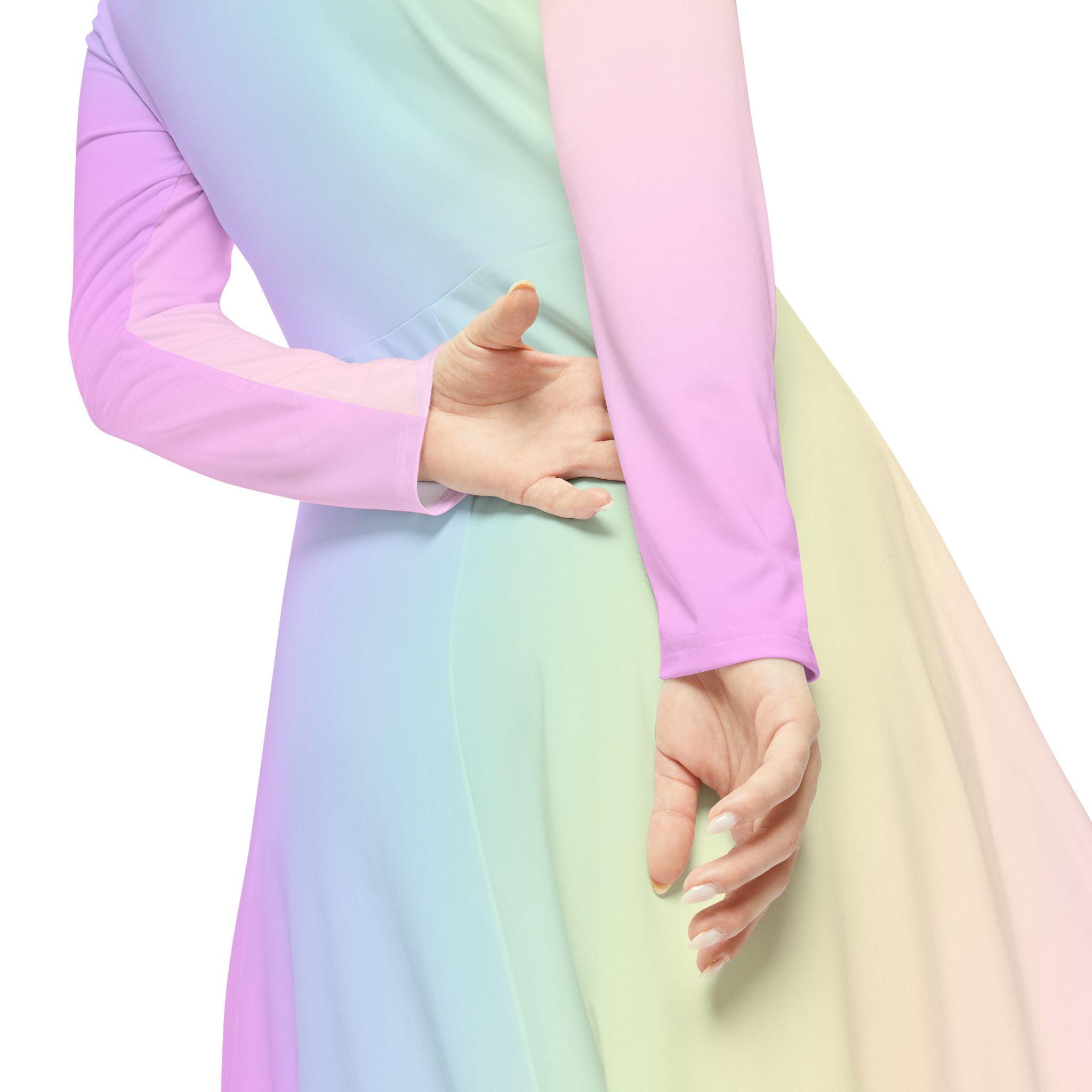 Pastel Rainbow Gradient Long Sleeve Dress: Spring Easter Outfit