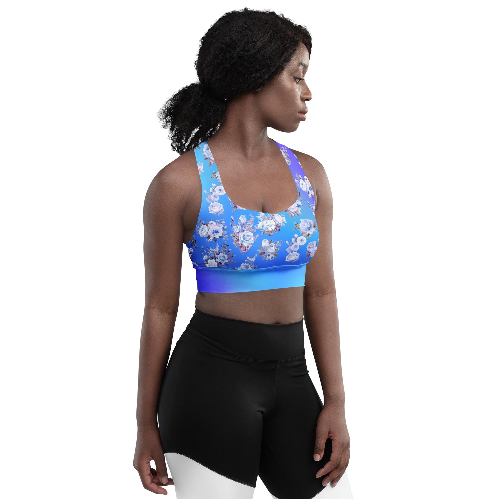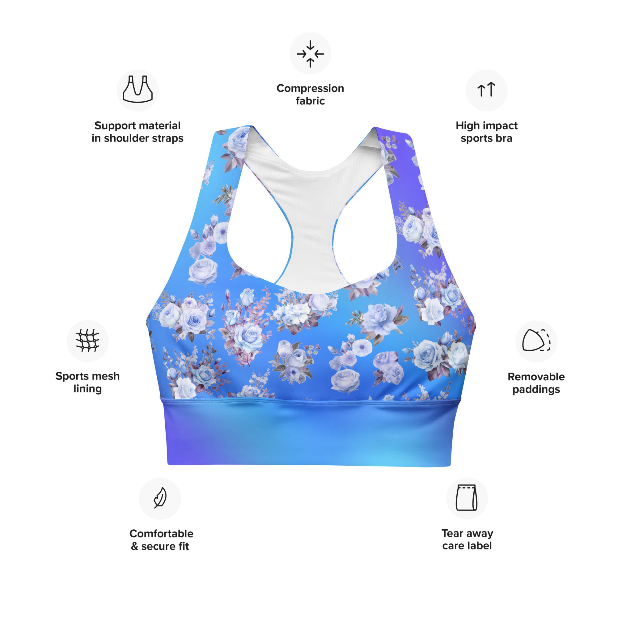 Stylish Blue Floral Longline Seamless Recycled Sports Bra | Sustainable & Supportive Design
