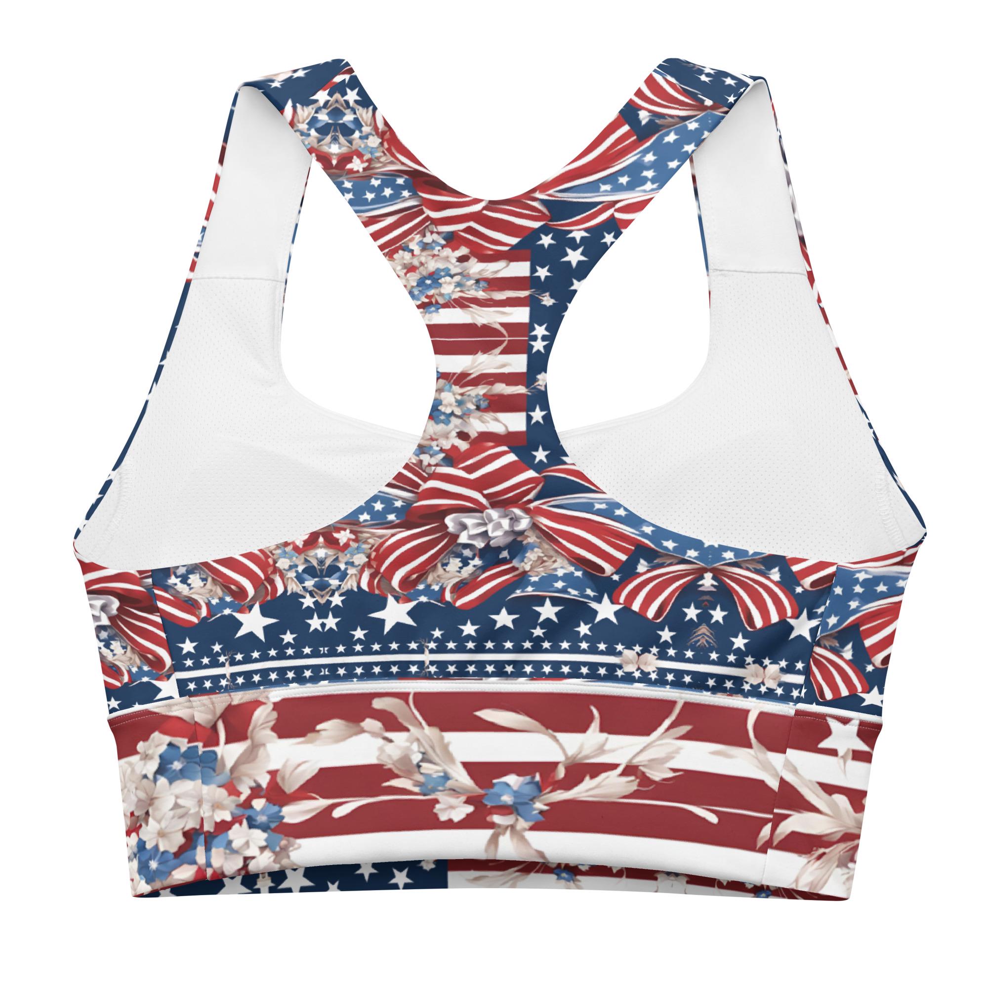 Patriotic USA Flag Recycled Longline Sports Bra: July 4th Workout Top