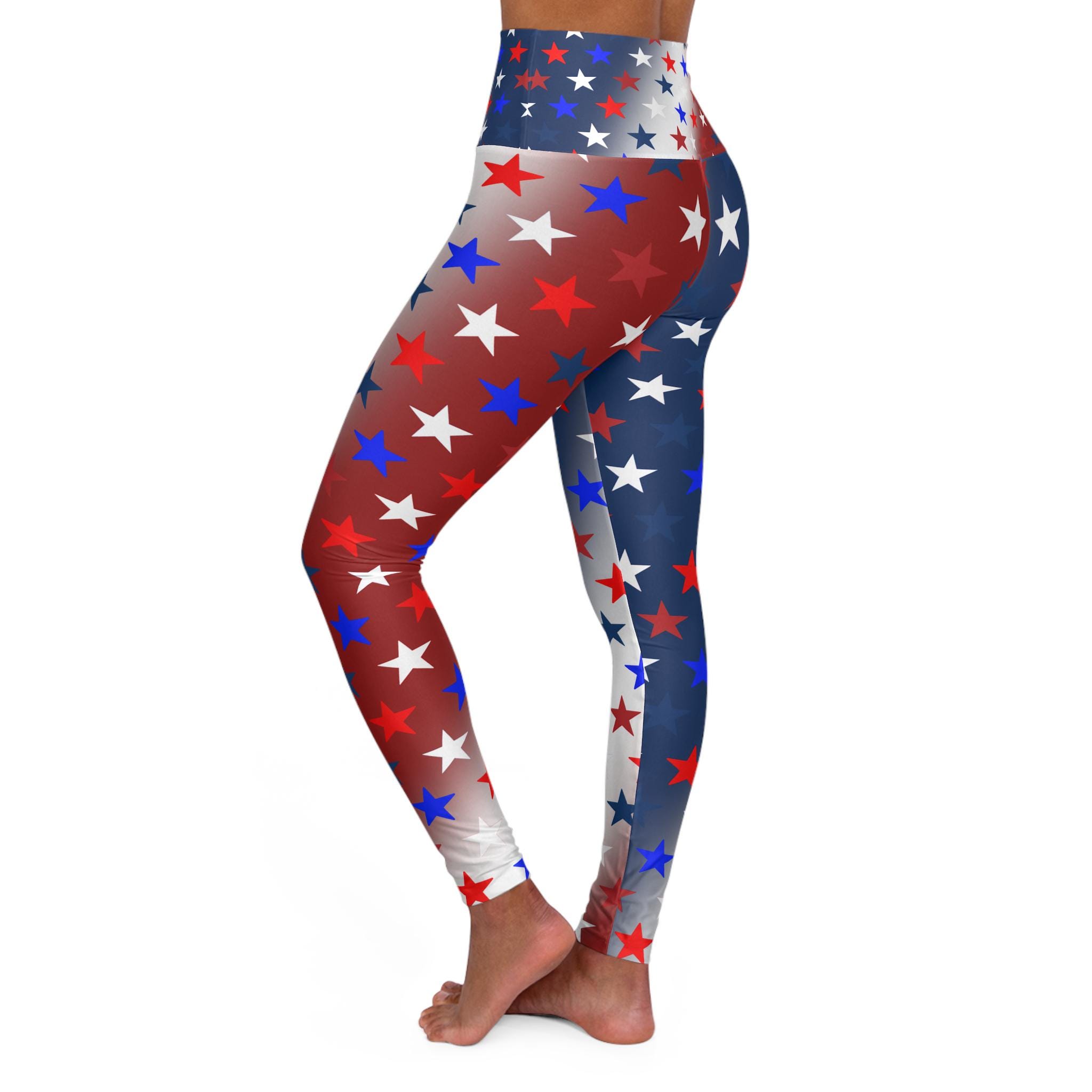 Patriotic High Waisted Leggings for Women | USA American Flag Stars & Stripes Inspired Yoga Pants for 4th of July Fitness Everyday Wear