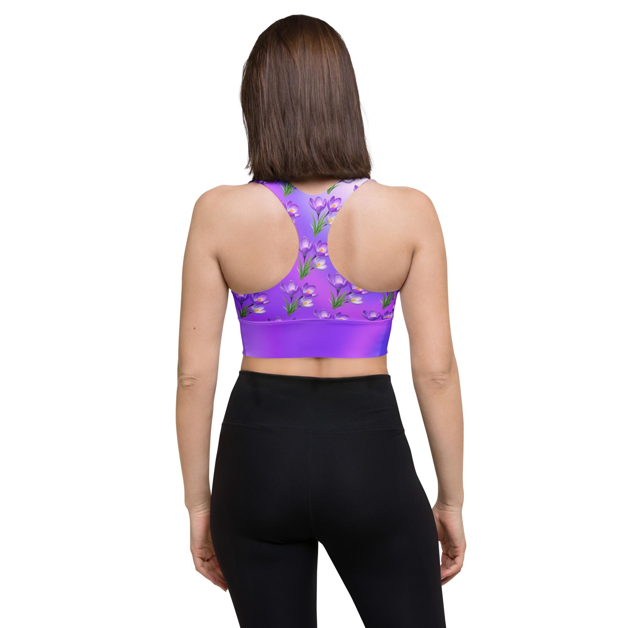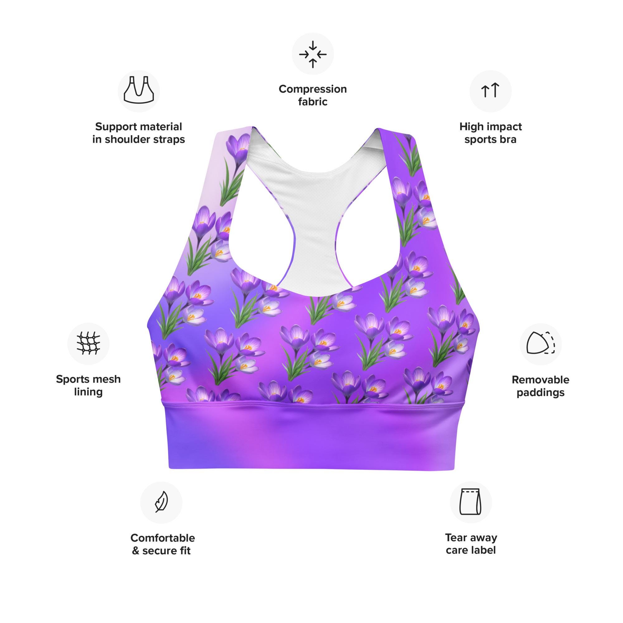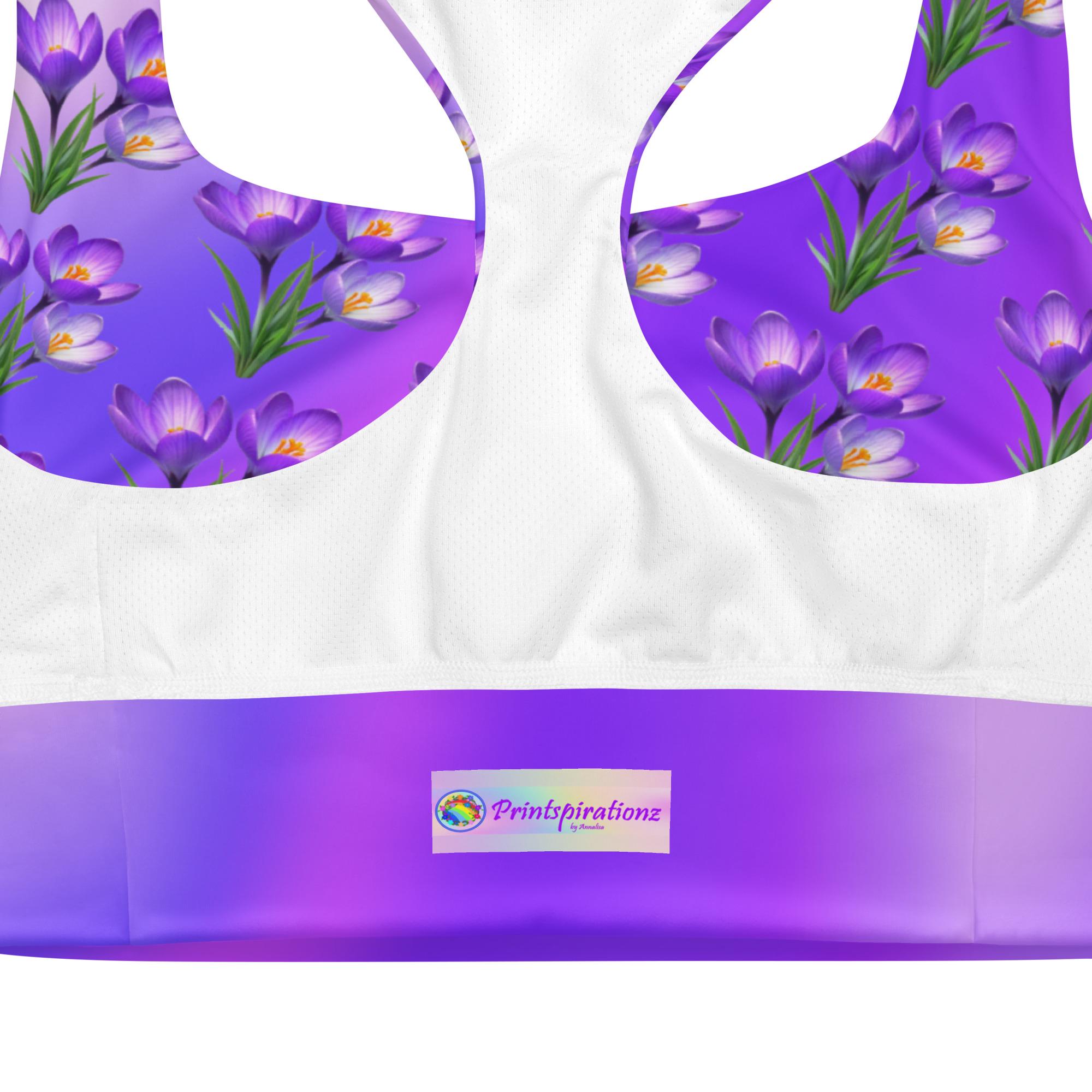 Recycled Longline Sports Bra: Purple Flower Gradient, Eco-Conscious Activewear