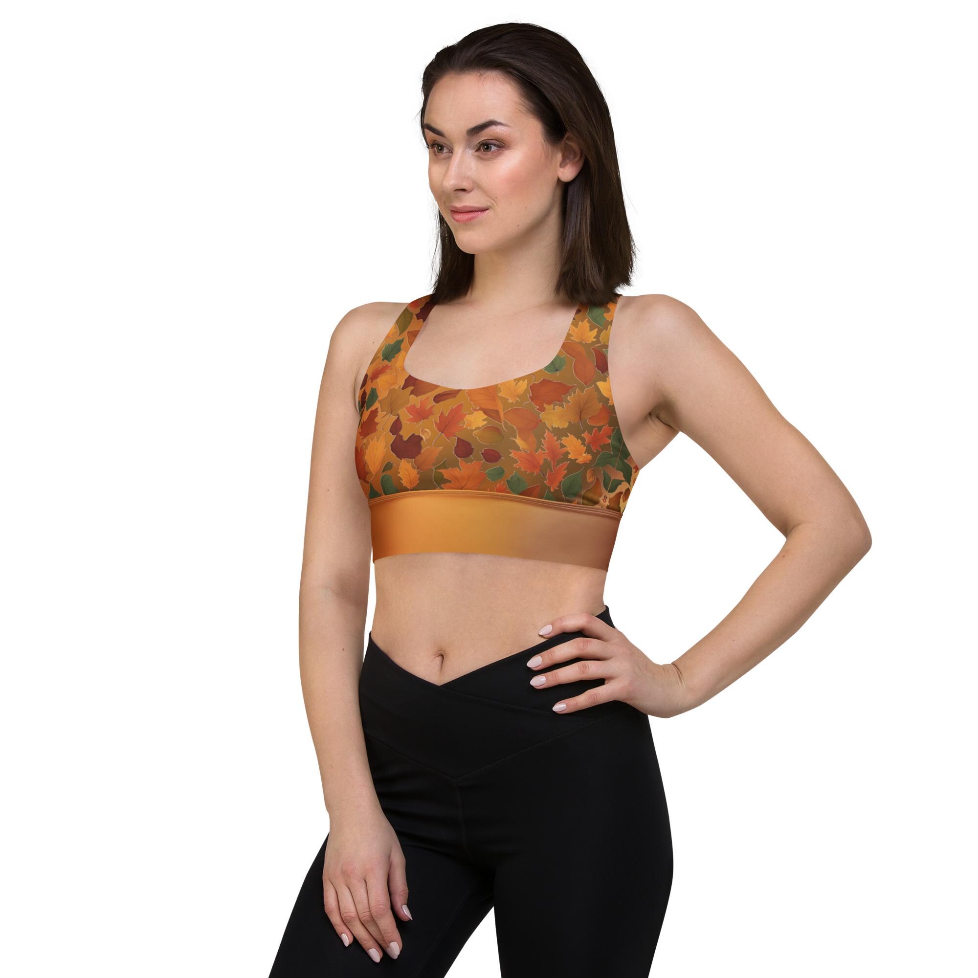 Recycled Longline Sports Bra with Fall Leaves Pattern – Fall Colors Eco-Friendly Activewear