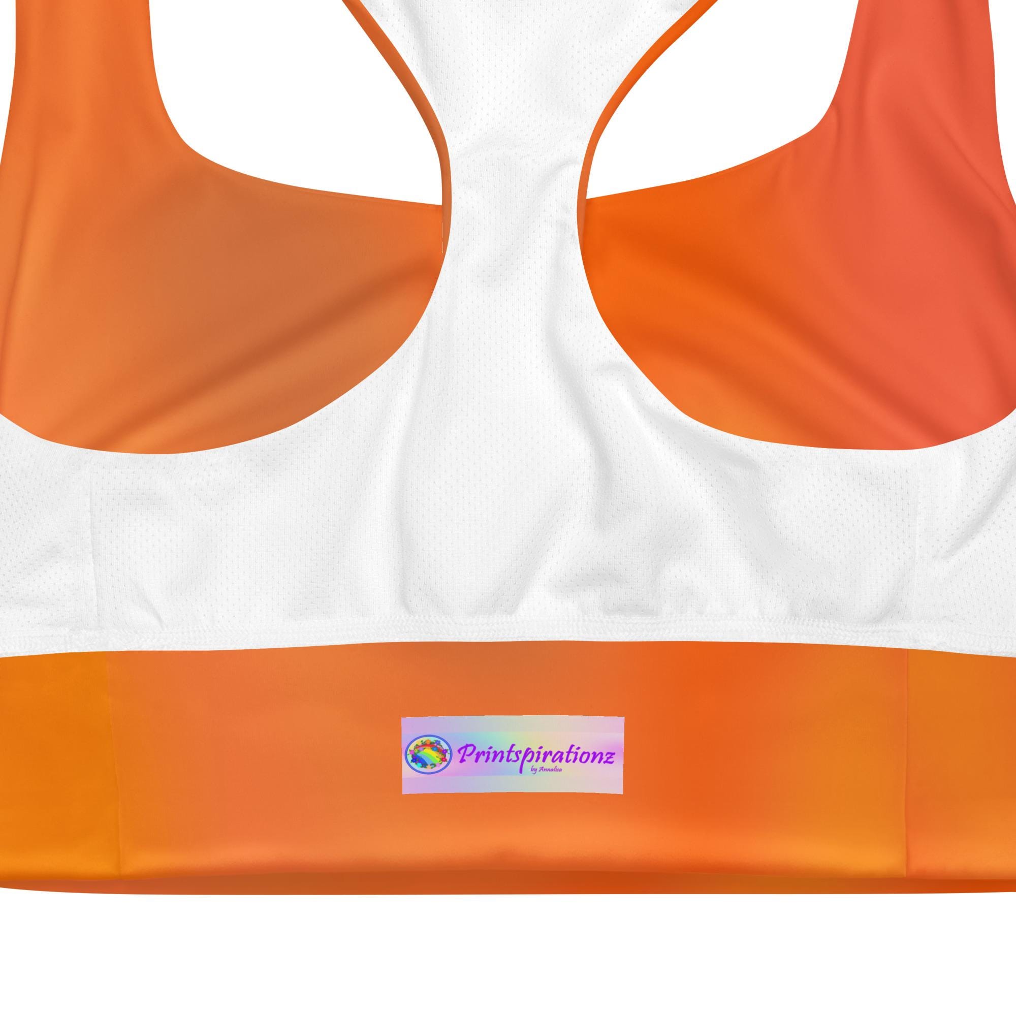 Recycled Longline Sports Bra with Gradient Orange Print – Eco-Friendly Compression Workout Top