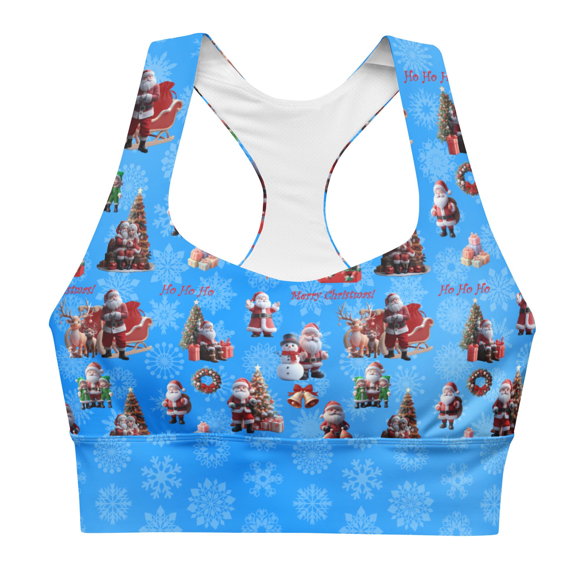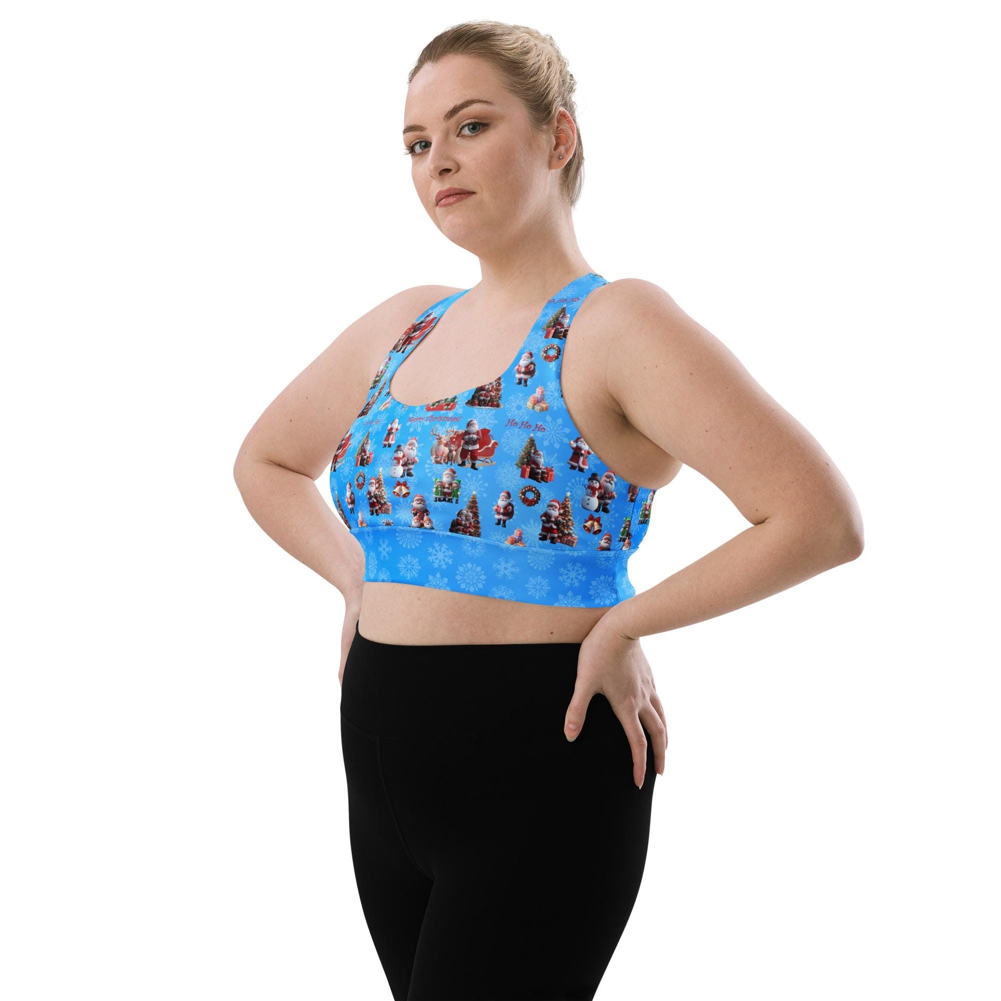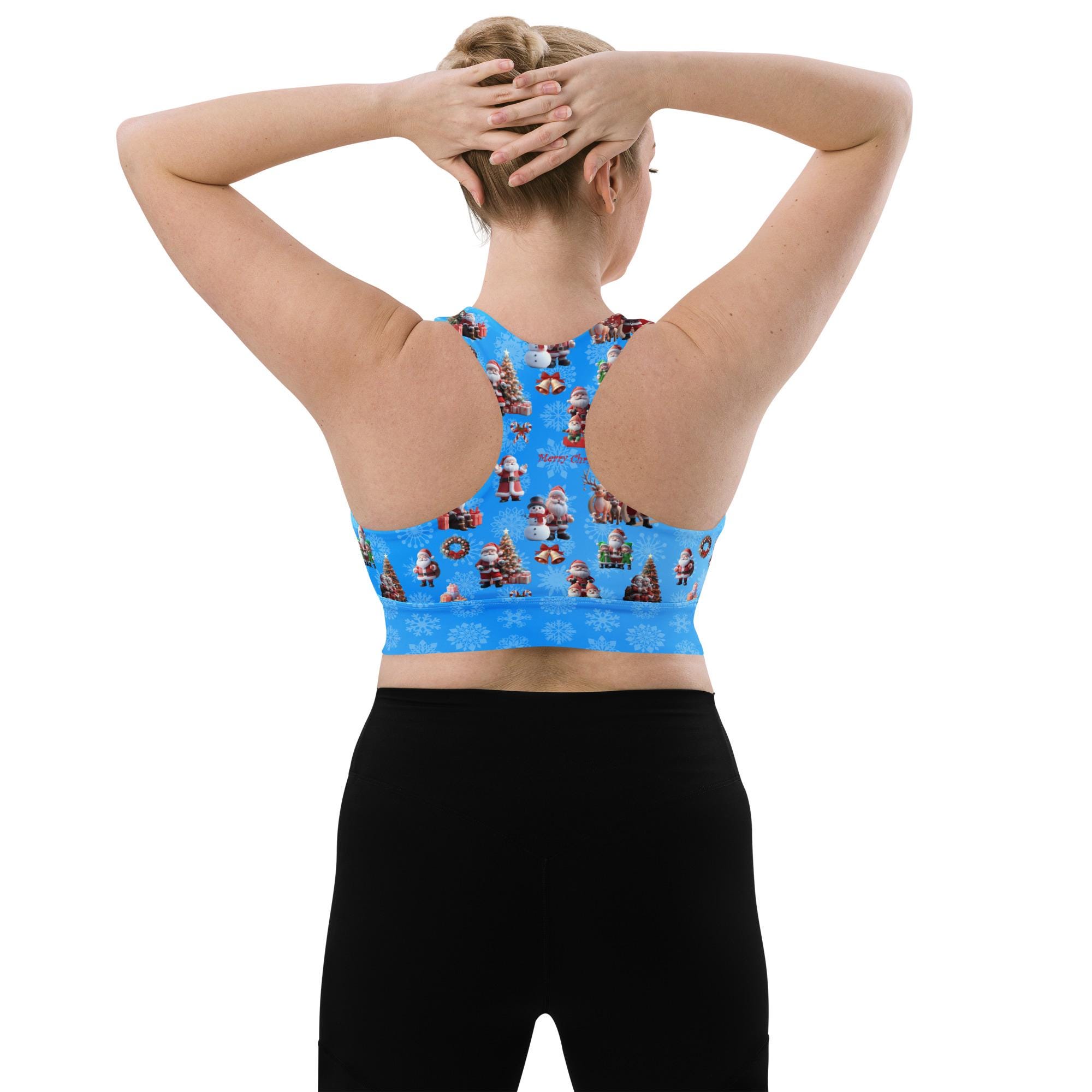 Santa Claus Longline Sports Bra: Recycled Snowflake Kawaii Art – Light Blue Snowflake Holiday Activewear Workout Top