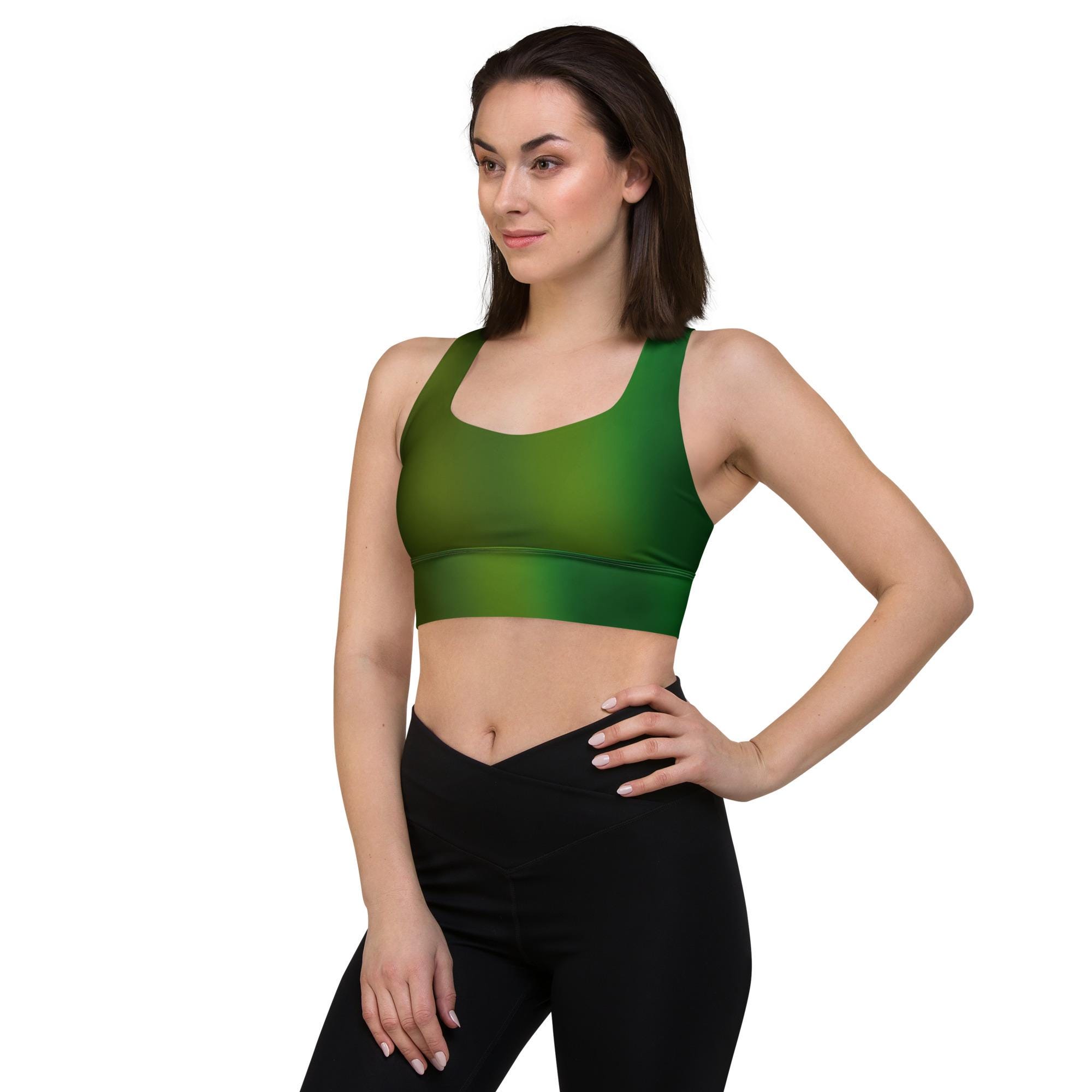 Army Green Gradient Longline Sports Bra for Women | Recycled Fabric Activewear Top, Yoga & Workout Crop Tank