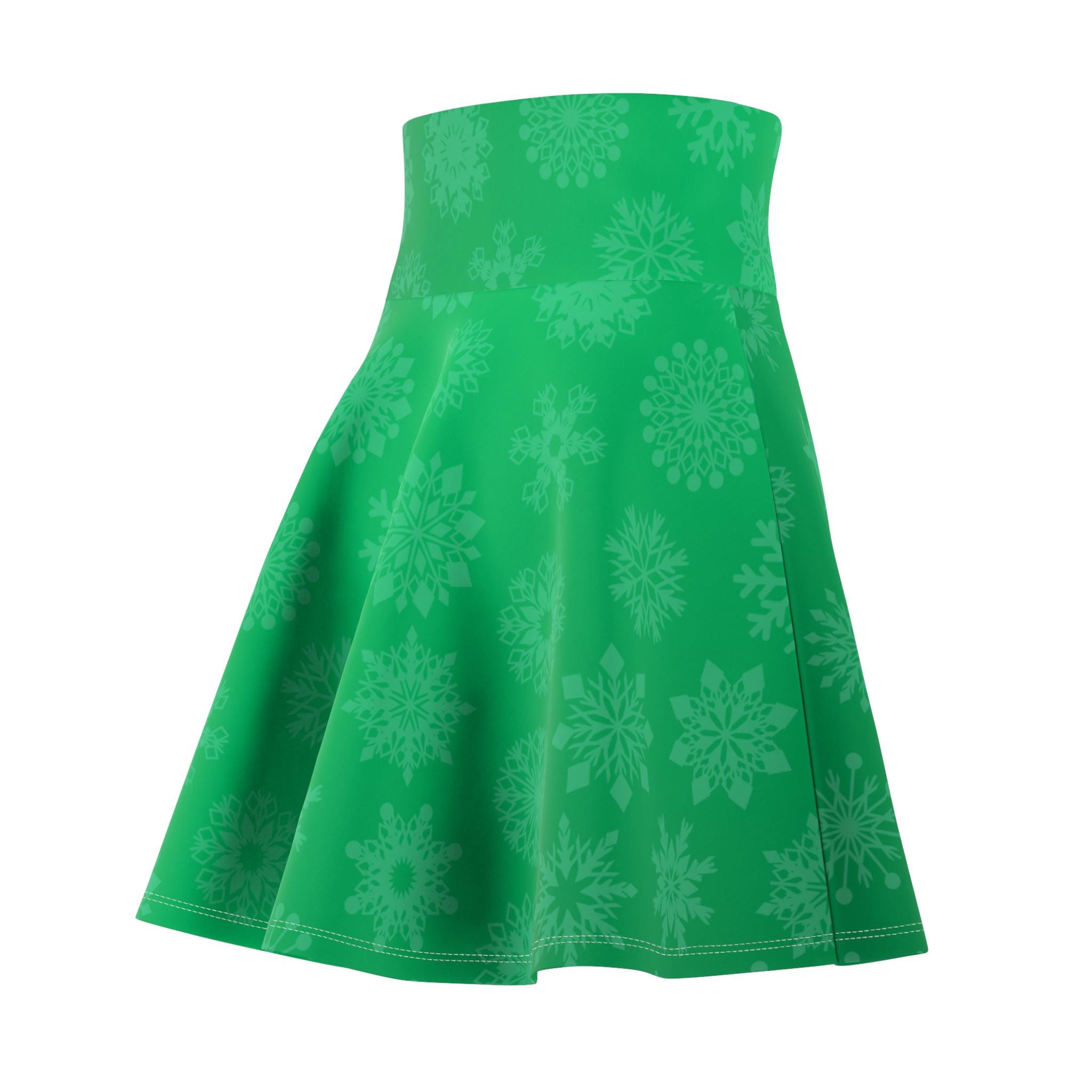Green Snowflake Pattern Skater Skirt | Holiday Winter Snowflakes All-Over Print