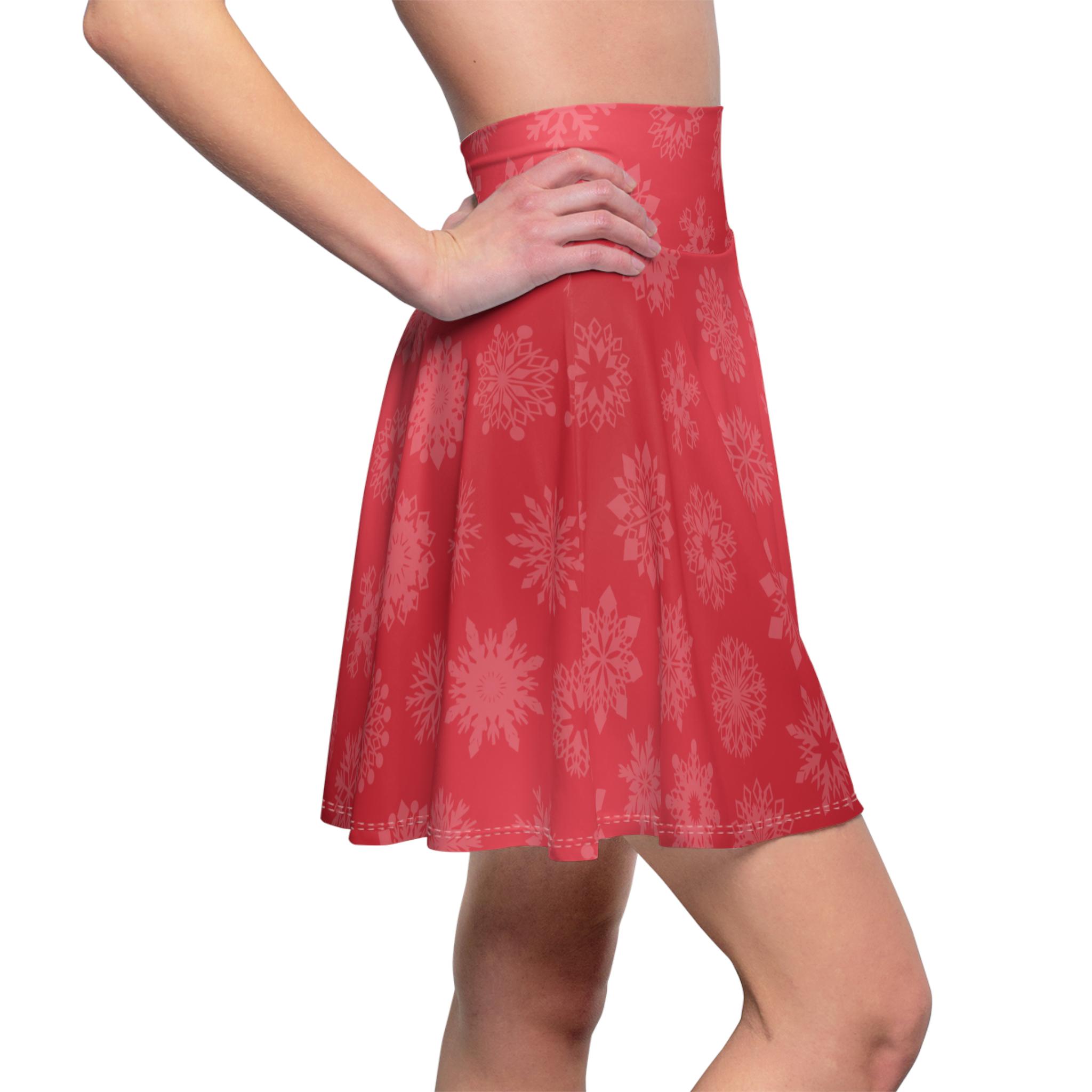 Red Snowflake Pattern Skater Skirt | Holiday Winter Print
