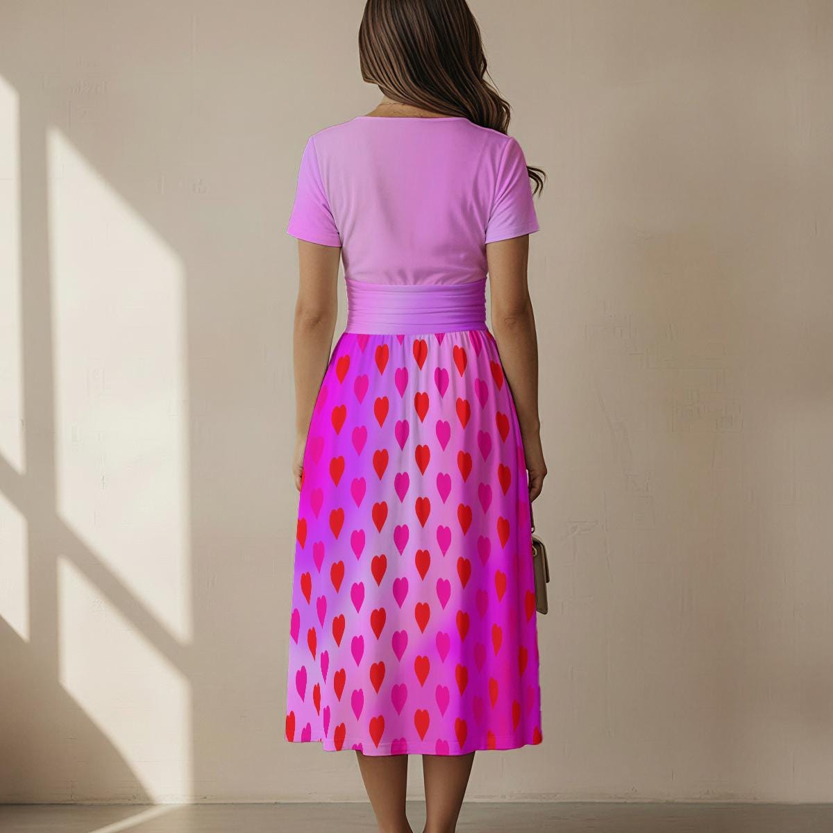 All-over Print Women's Short Sleeve V Neck Midi Dress