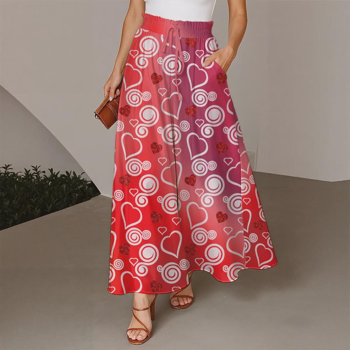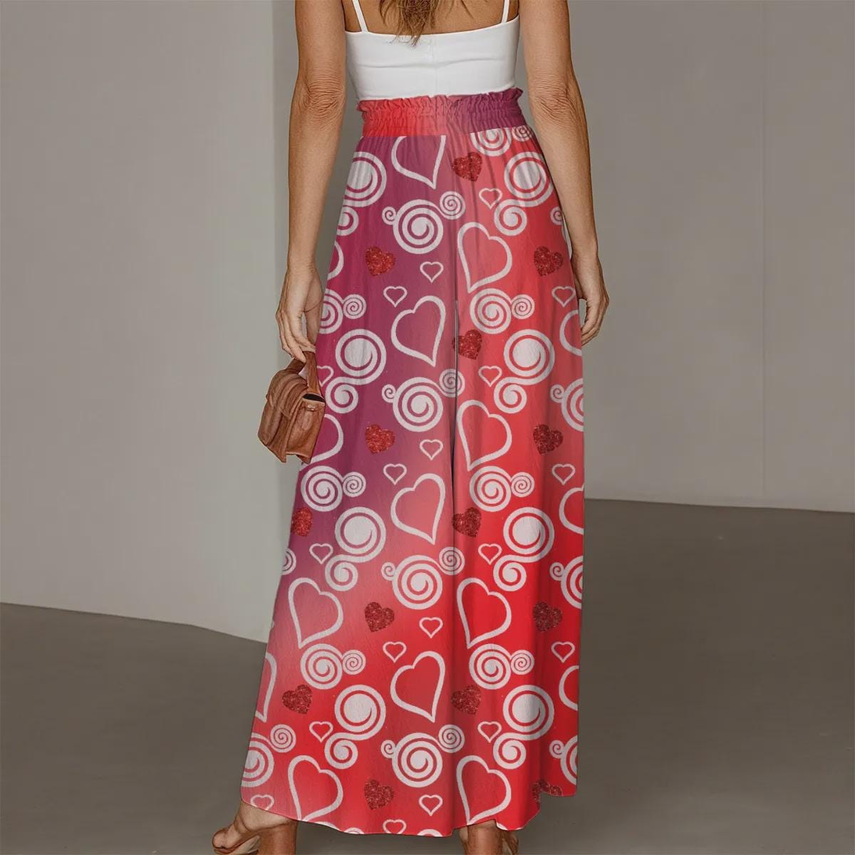 Hearts and swirls Red Gradient Women's Ruffled Wide-Leg Pants