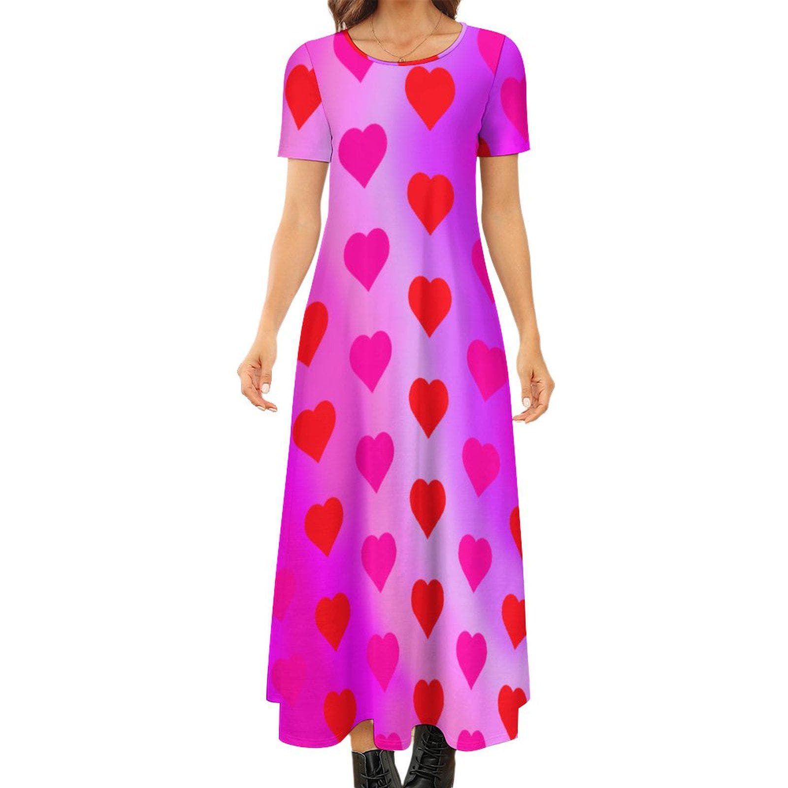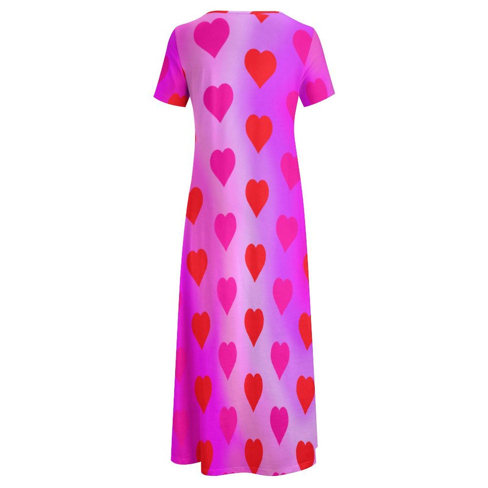 Pink and Red Hearts Round Neck Short Sleeve Dress