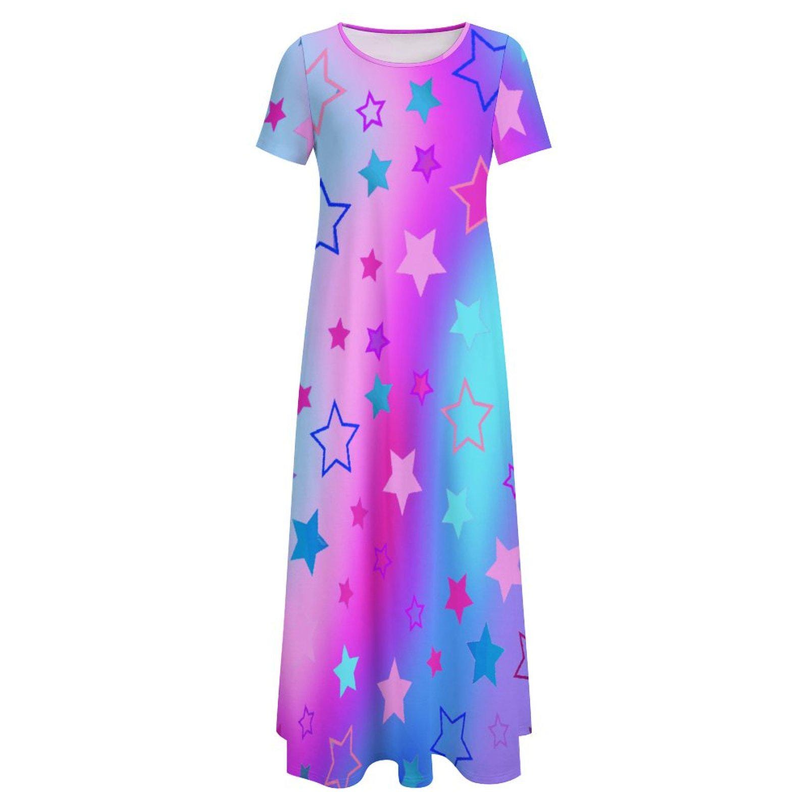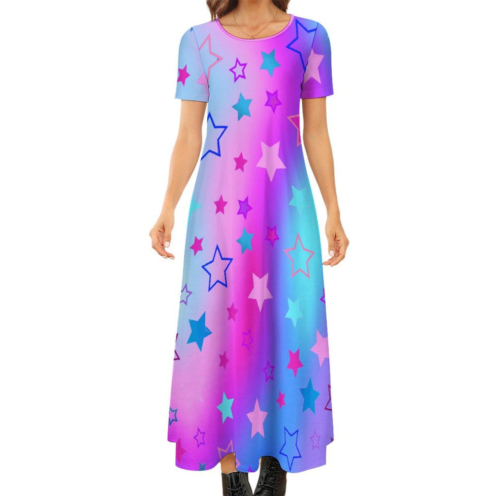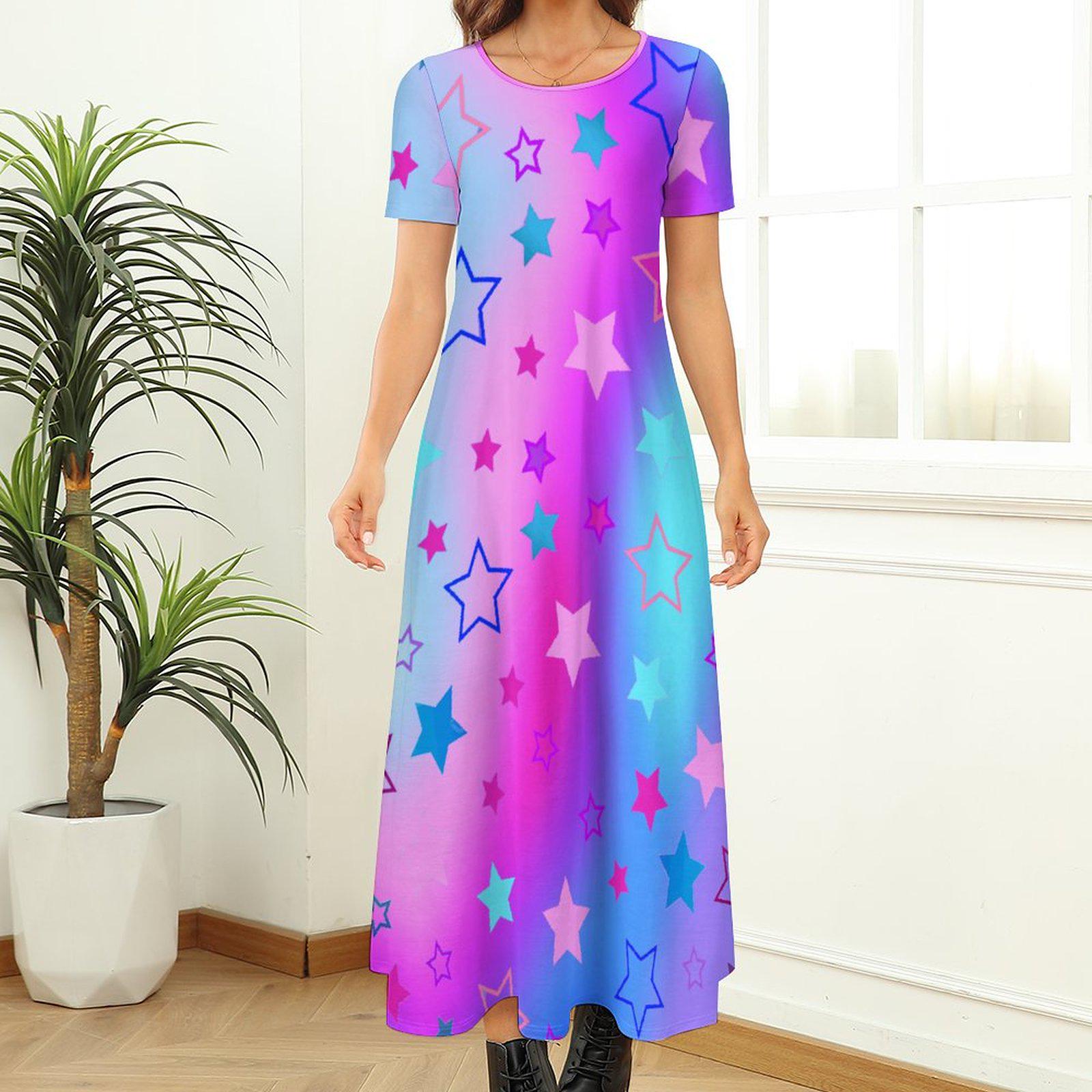 Product Performance: The Round Neck Short Sleeve Dress covers your waist and hip for comfortable wearing, suitable for girls of different figures. Neither pilling and nor fading, the imitation cotton fabric is comfortable-to-wear and shrink-resistant for long-term wearing. The Round Neck Short Sleeve Dress is nice to match with a hat, a pair of sandals and necklace etc. With personalized patterns, the Round Neck Short Sleeve Dress makes you stylish, charming and confident. Excellent for your leisure time, this classic-style Round Neck Short Sleeve Dress is never out of date and can stand the test of time.