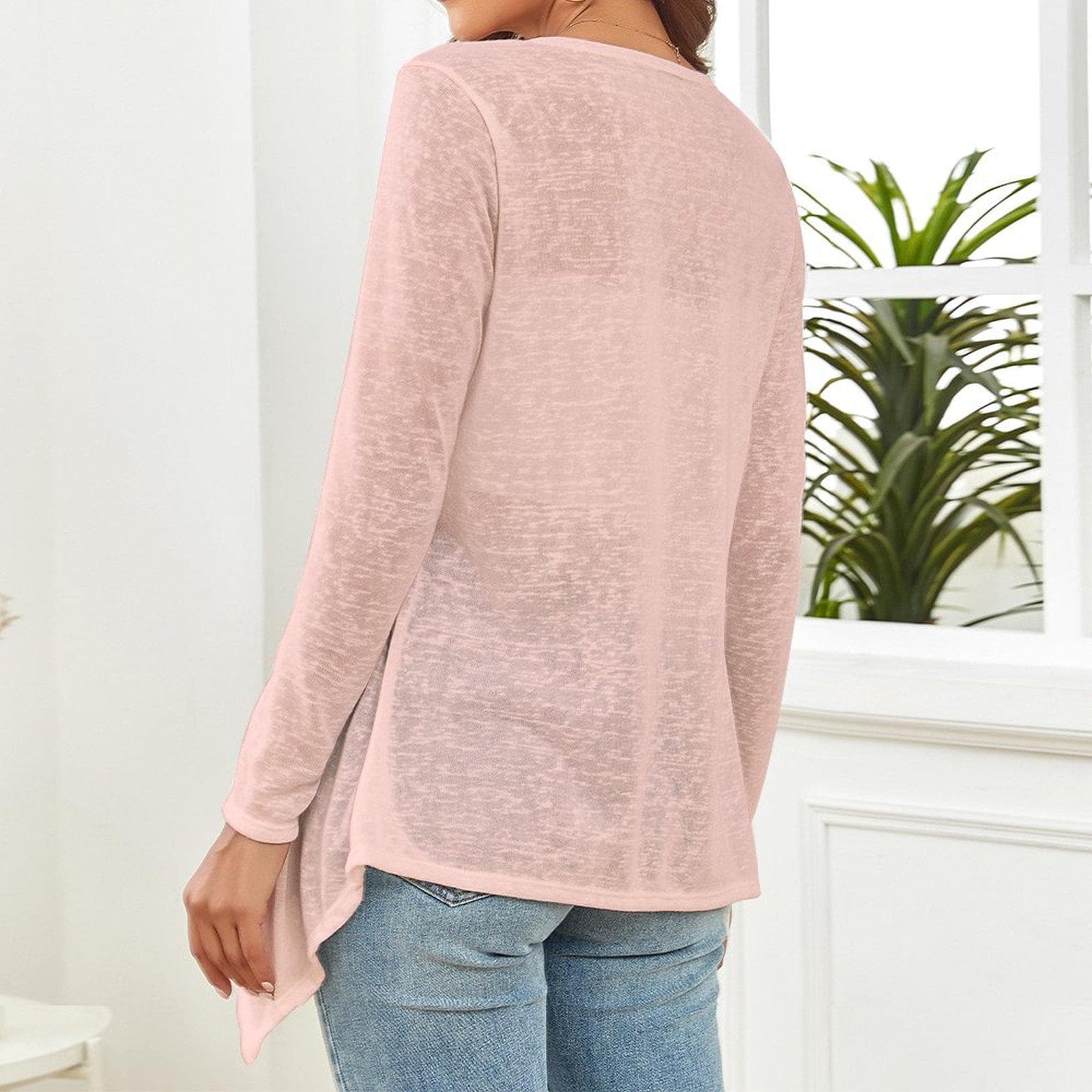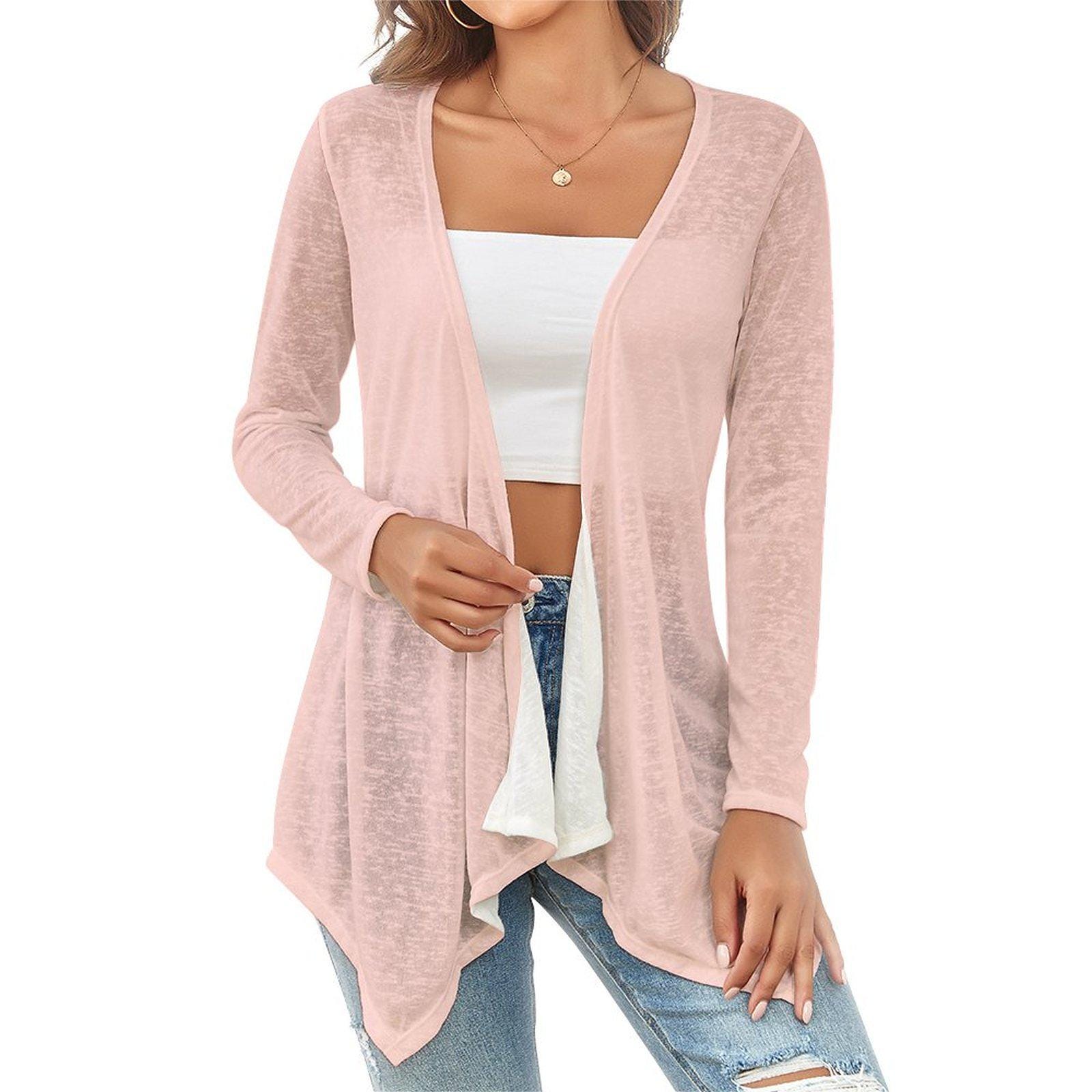 Pastel Peach Drop Shoulder Cardigan Open Shirt with Irregular Hem